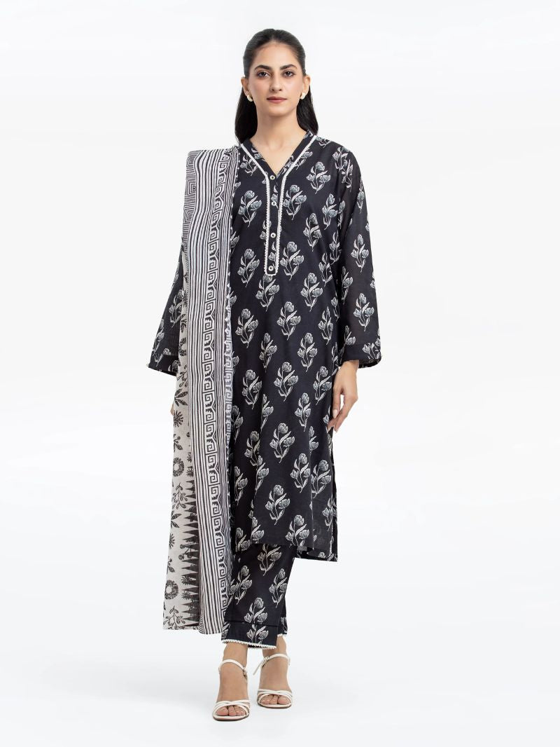 Women's Pret 3Pc Suit Straight Fit Khaddar Fabric