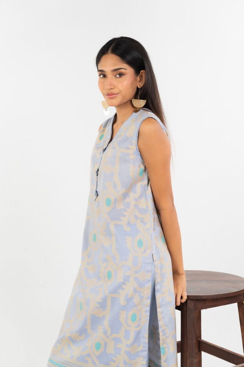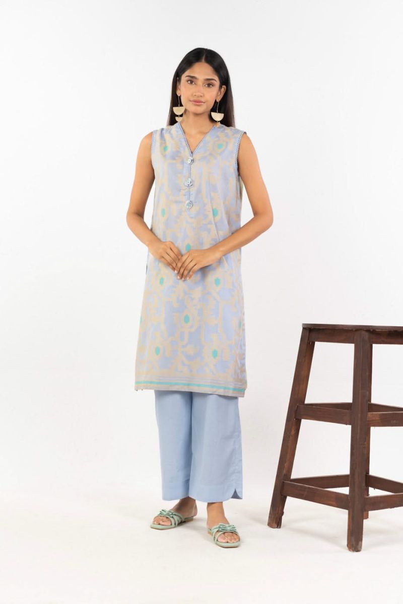 Sky Blue Embroidered Kurti