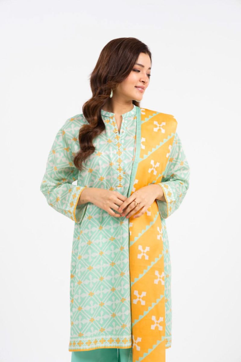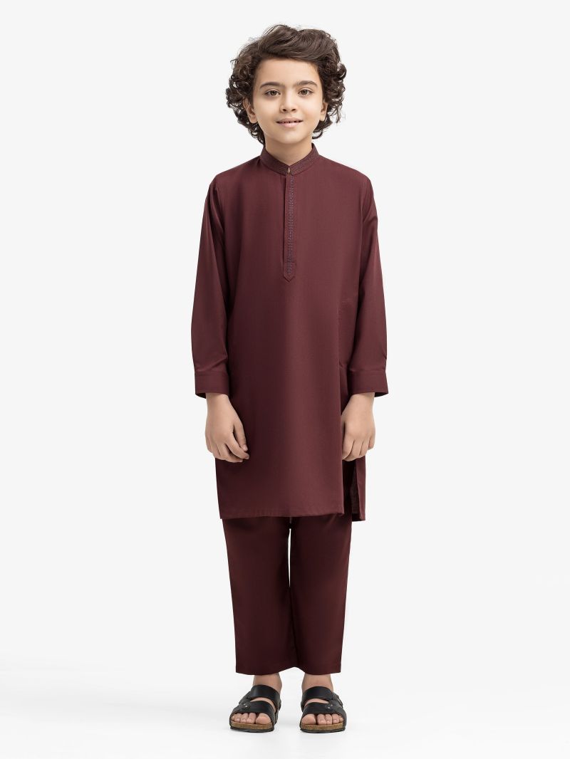 Plum Fine Lawn Coral Colour Printed White Pink Flowers On 2 pc suit For Girls.