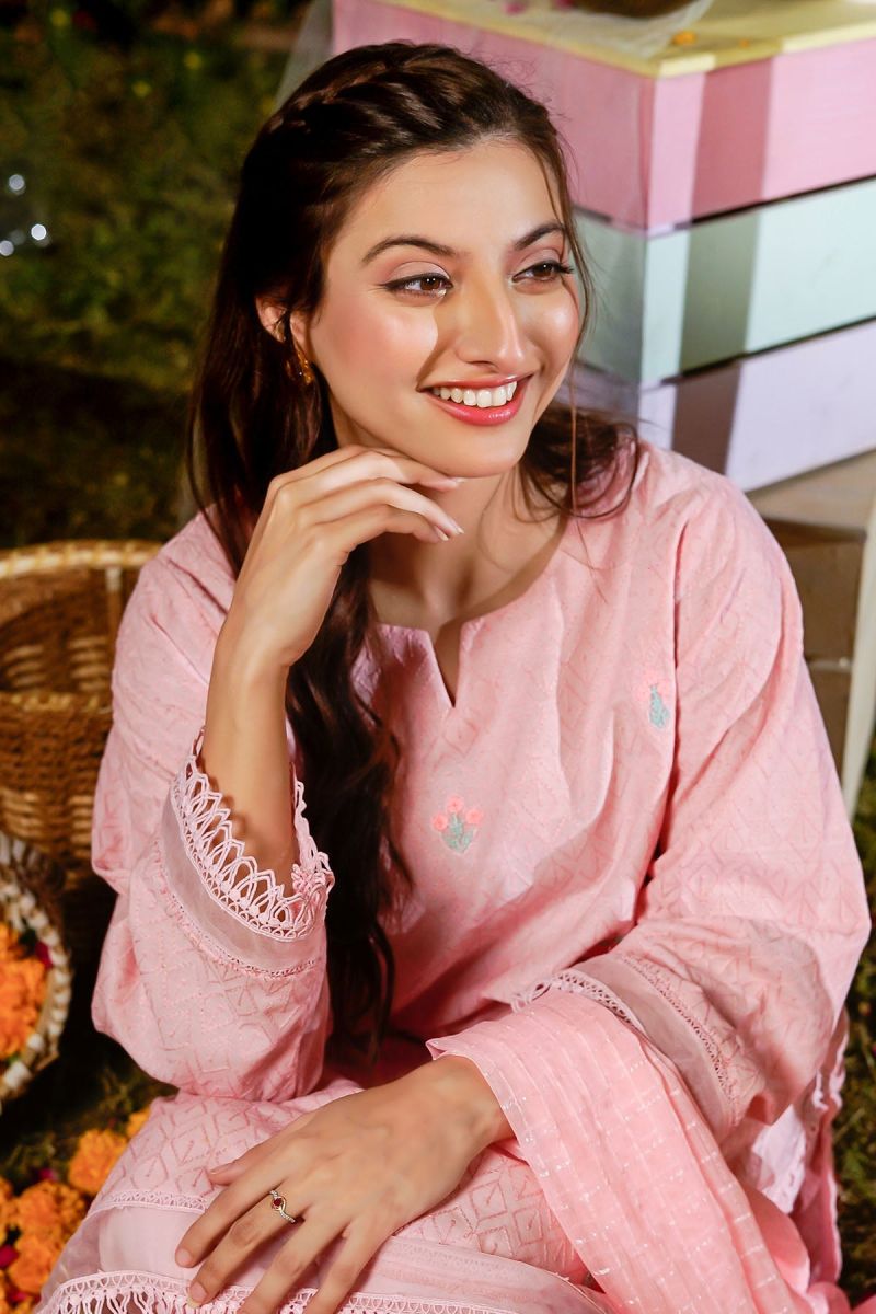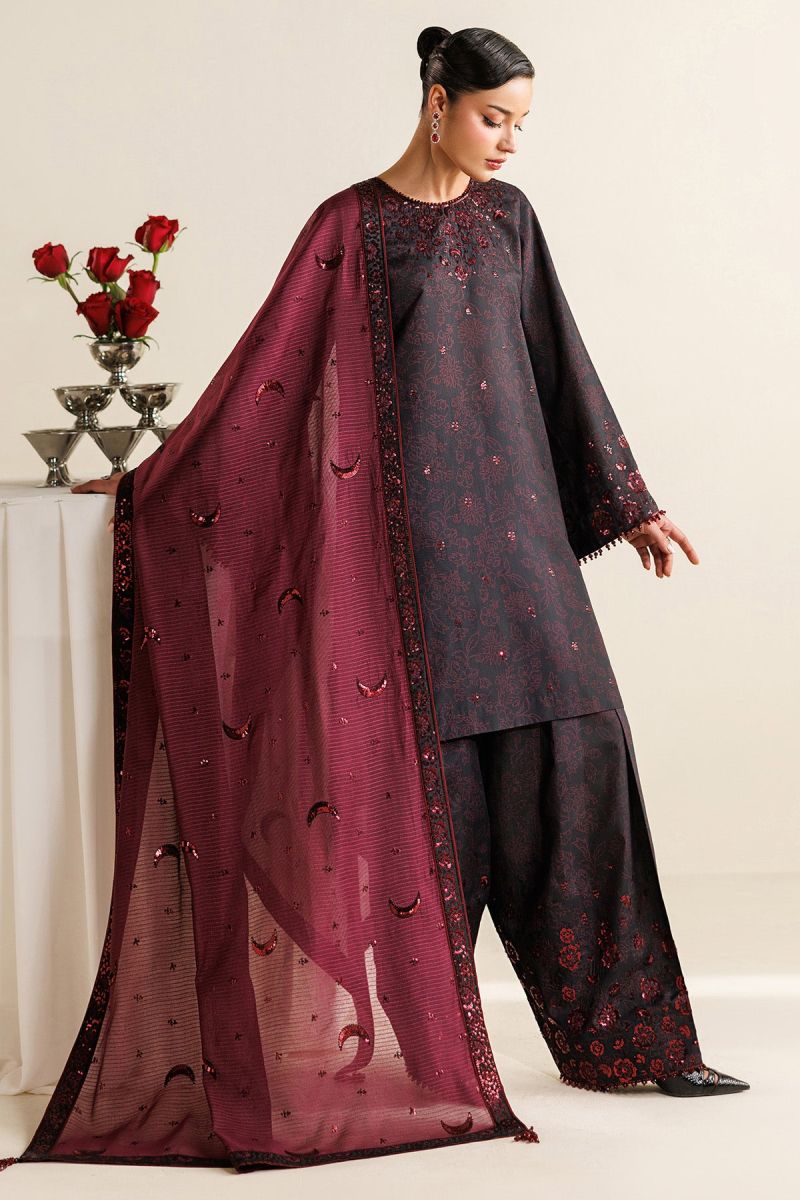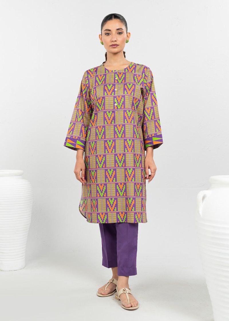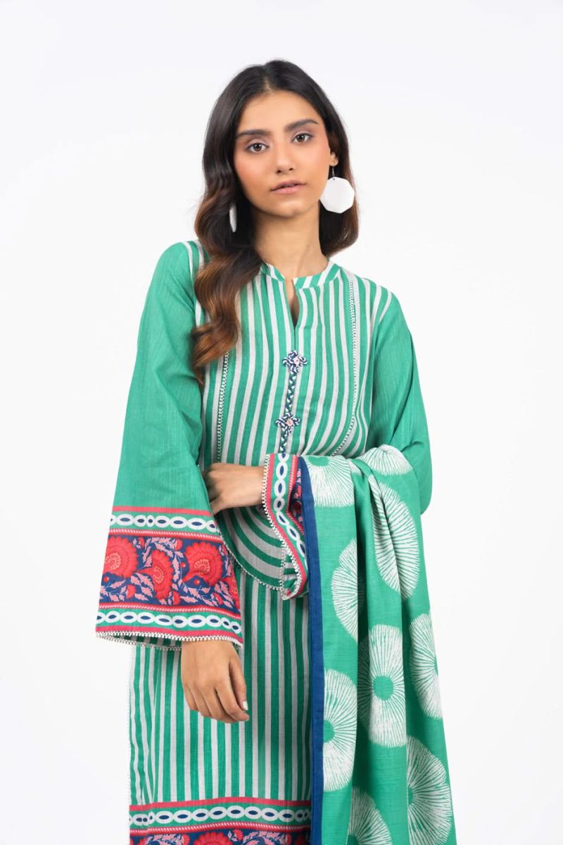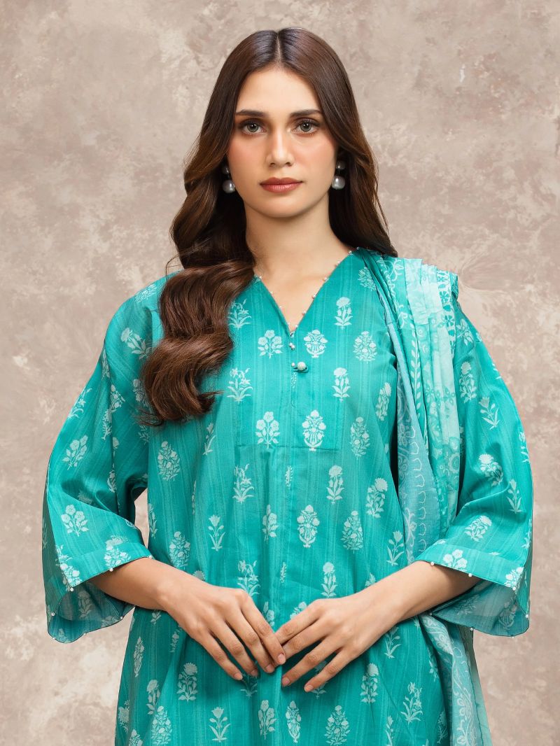 Plum Digital Lawn Sea Green Colour Printed Red Orange White Flowers on 2 Pc stitched suit for Girls.