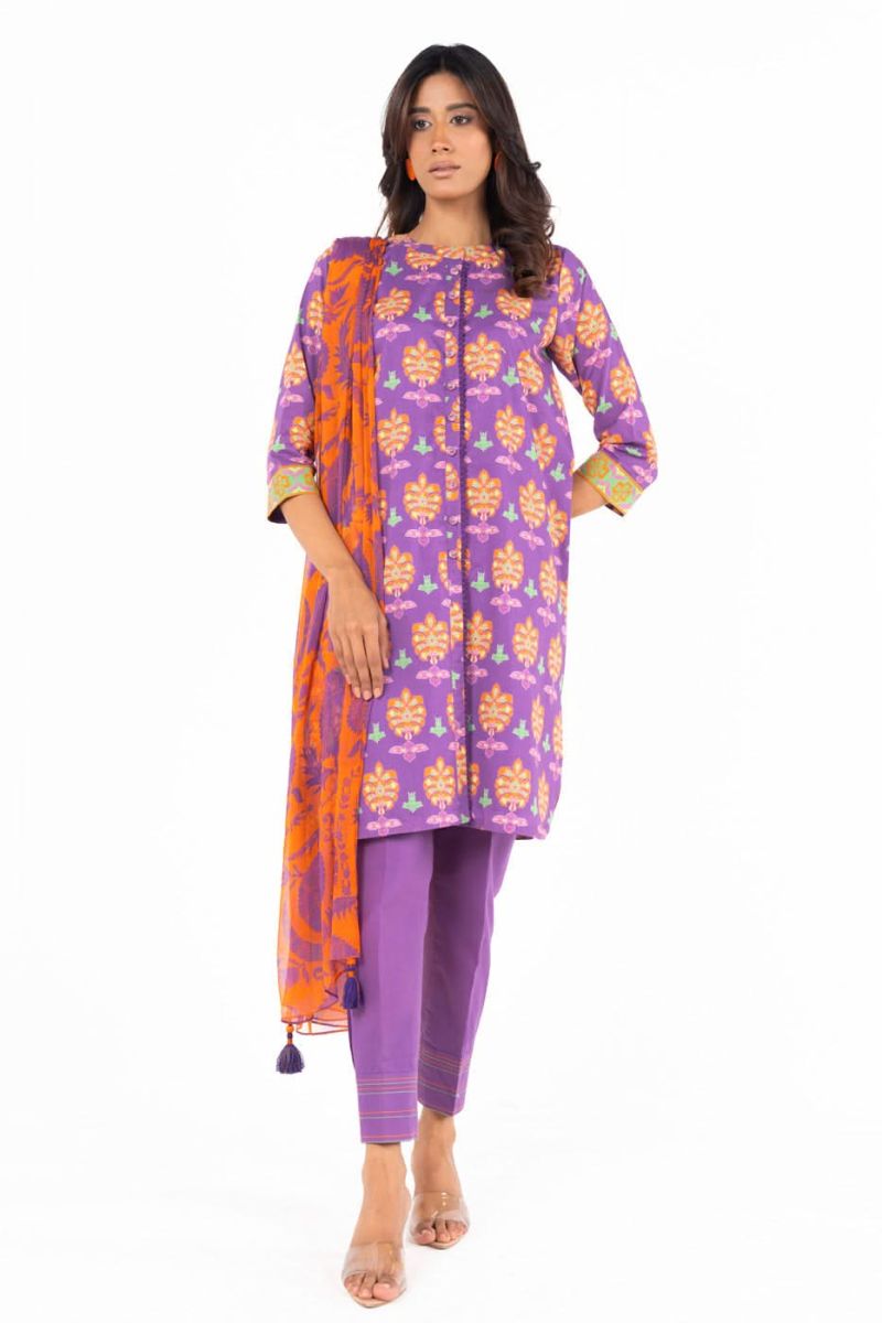 Plum 100% Cotton Lawn Purple Colour Printed White Burgundy Flowers Embroidered White threads On Stitched 2 pc suit for Girls.