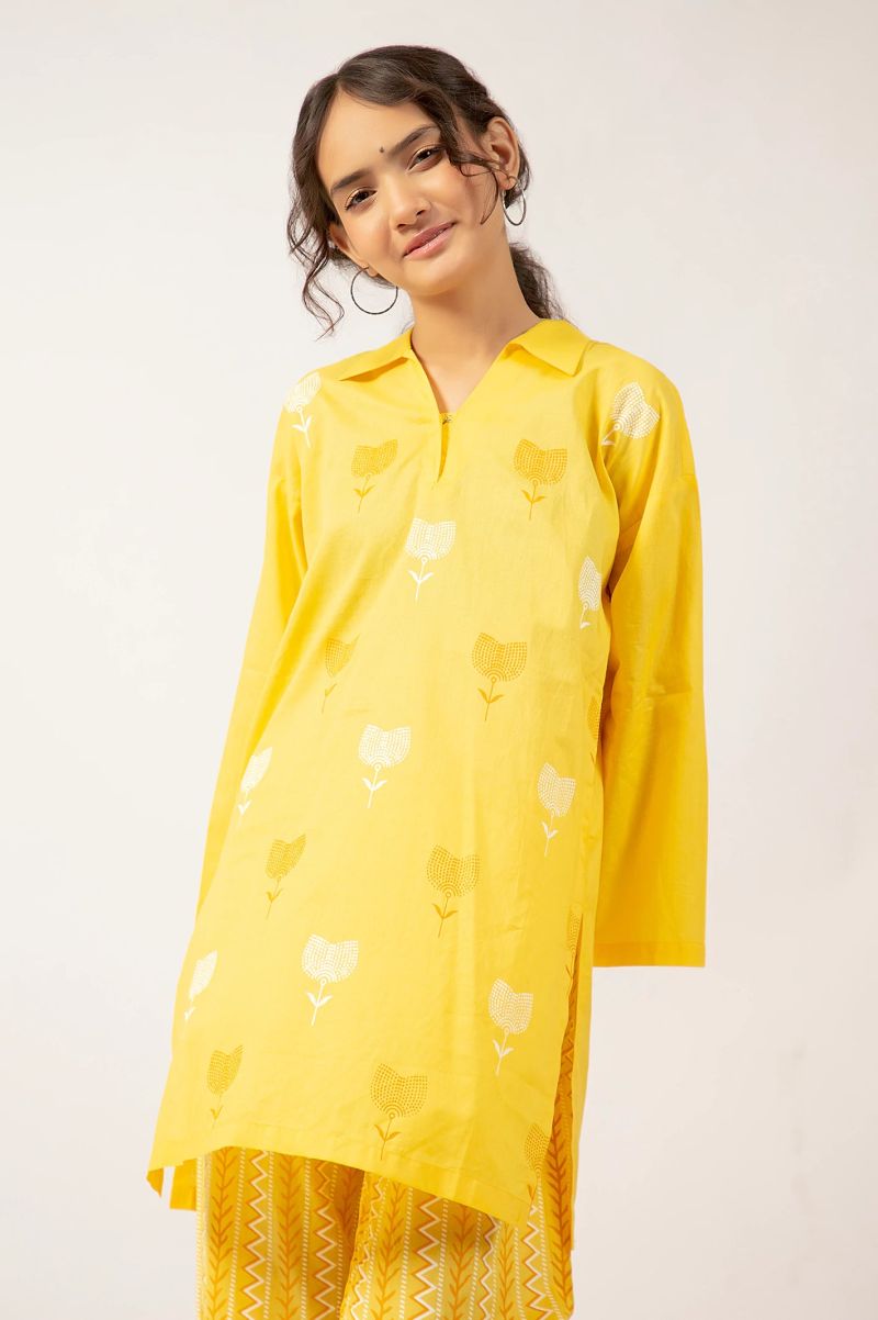 Yellow Embroidered Kurti