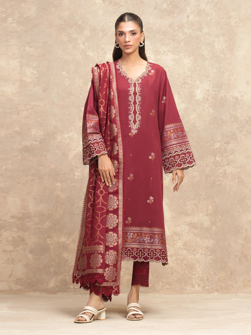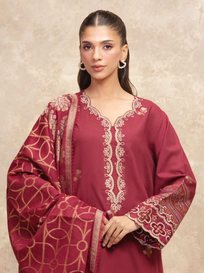 Maroon Embroidered 3PC