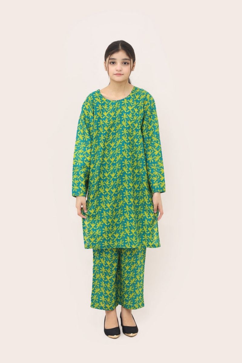 Plum Digital Lawn Green Colour Printed Yellow Flowers On 2 pc stitched suit For Girls.
