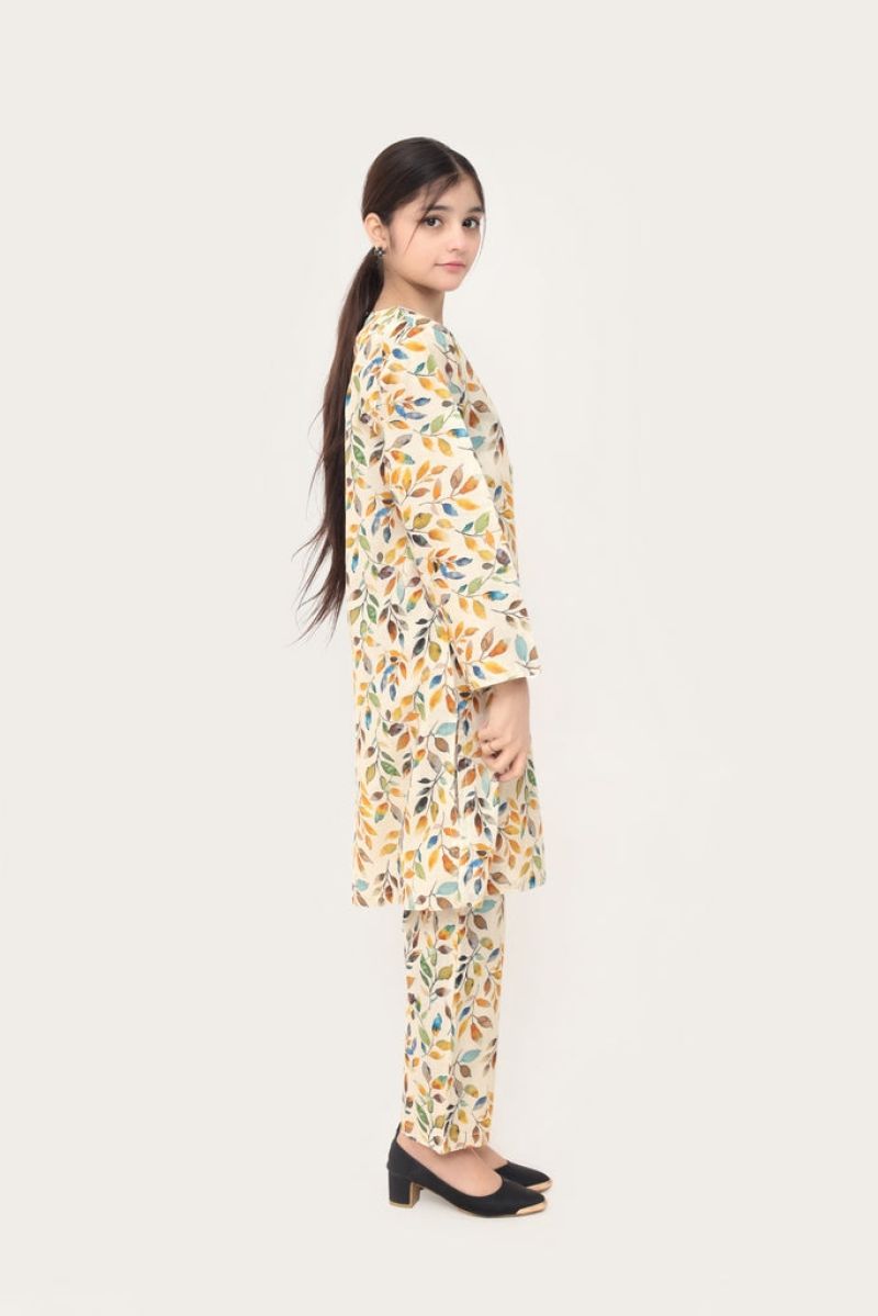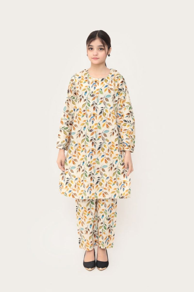 Plum Digital Lawn Off White Colour Printed Colourful Leaves On 2 pc stitched suit For Girls.