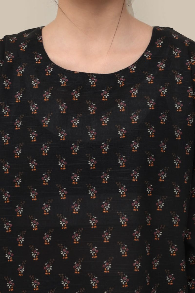 Plum Premium Khaddar Black Colour Printed Yellow White Flowers On 2 pc Stitched suit For Girls
