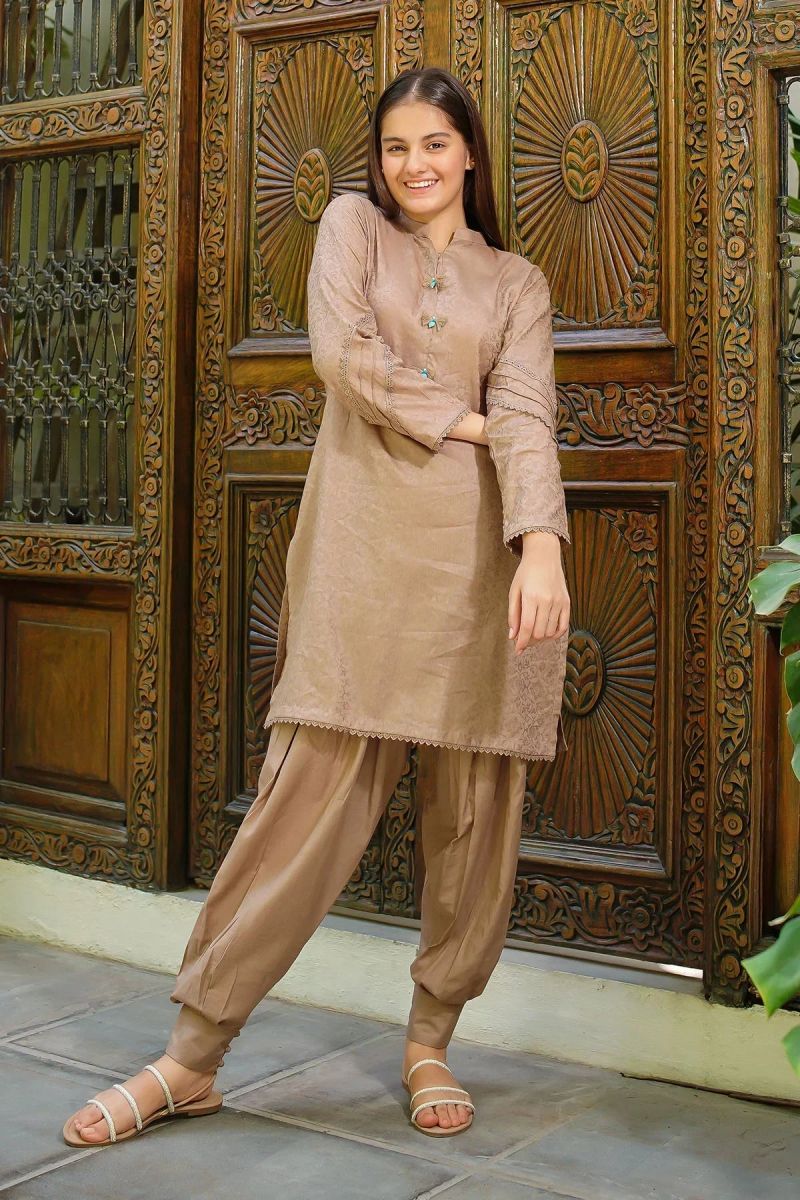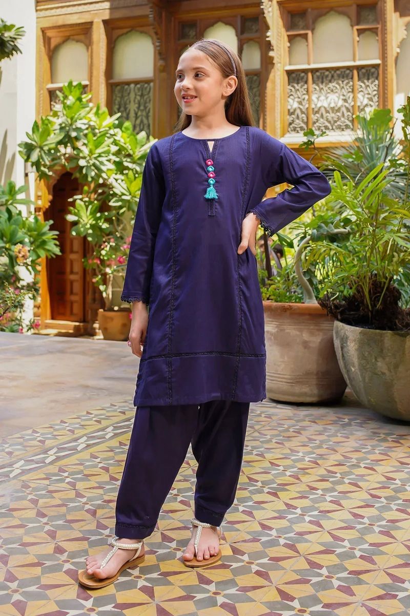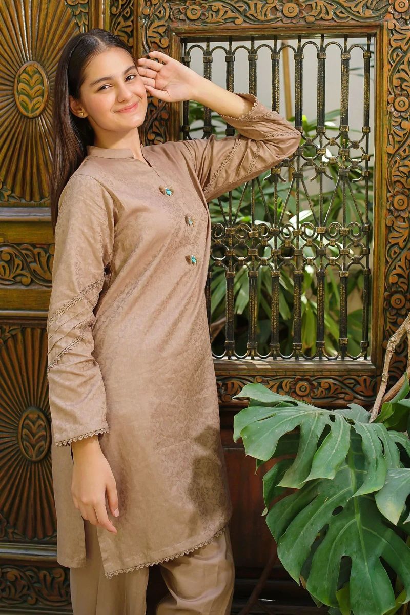 Dobby Cotton Embellished 2 Pc Suit