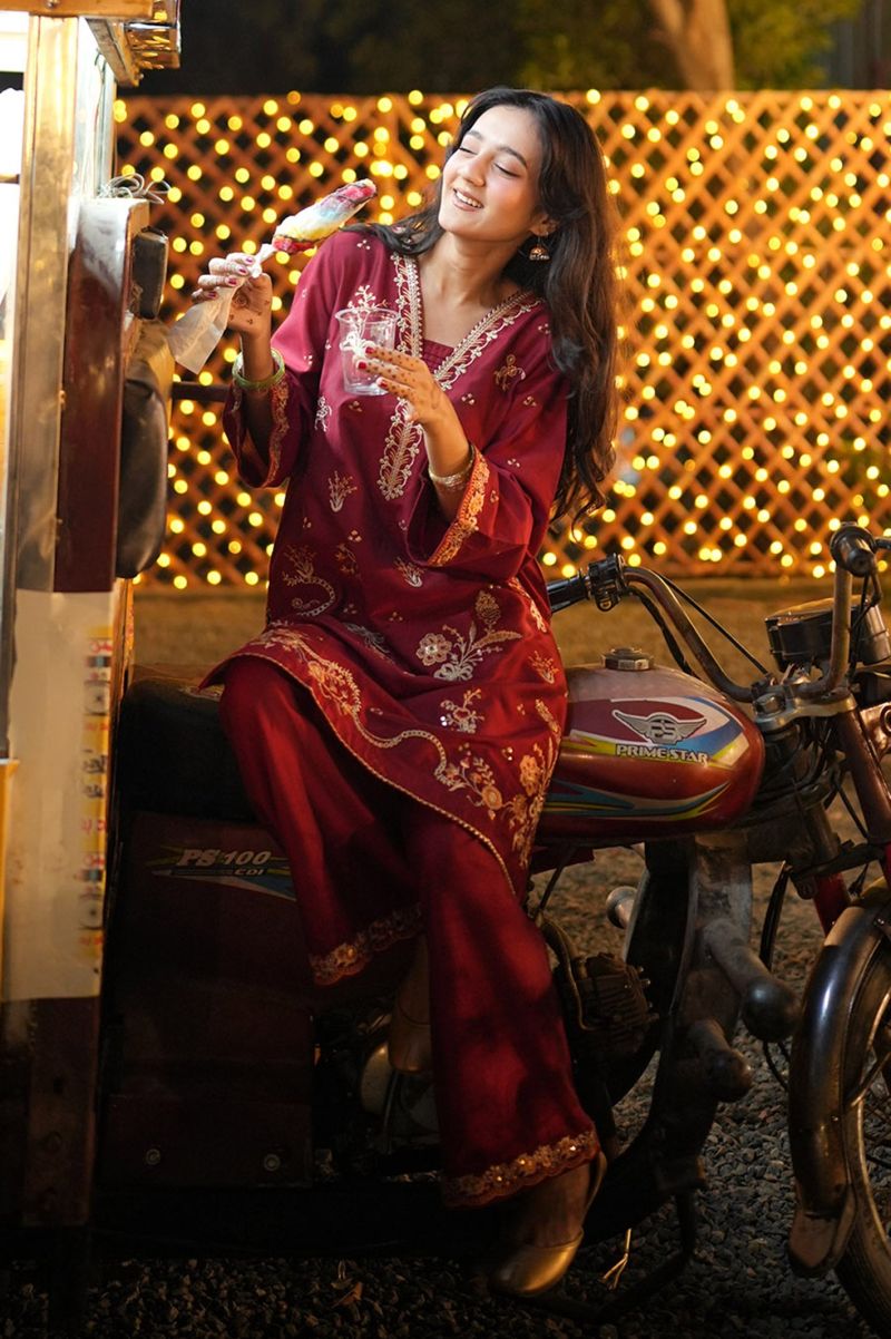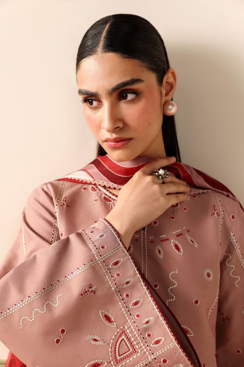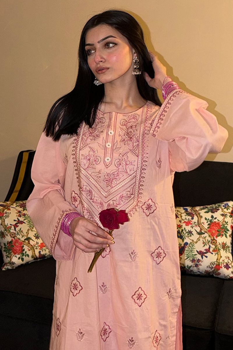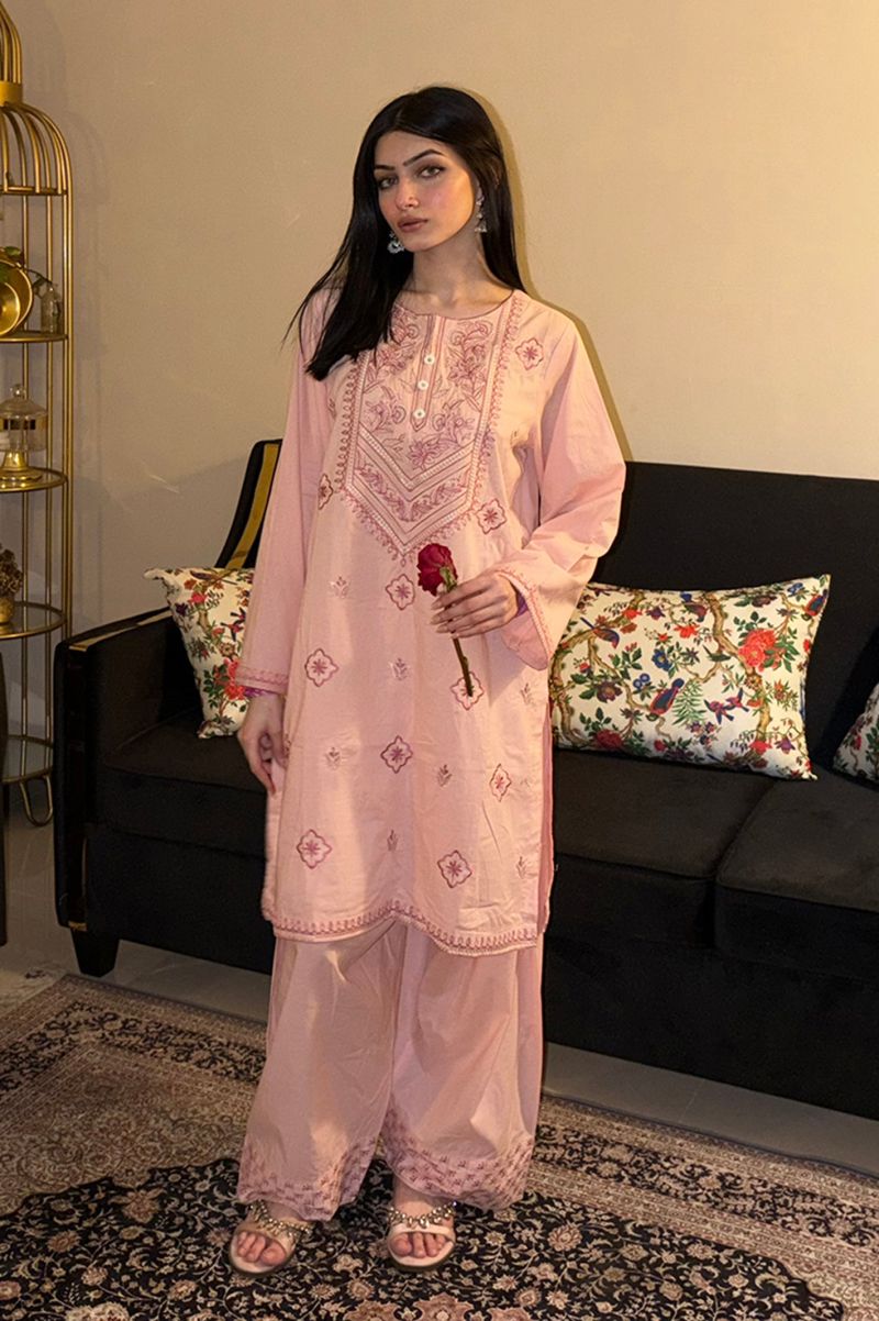 Embroidered Cotton Pink 2PC