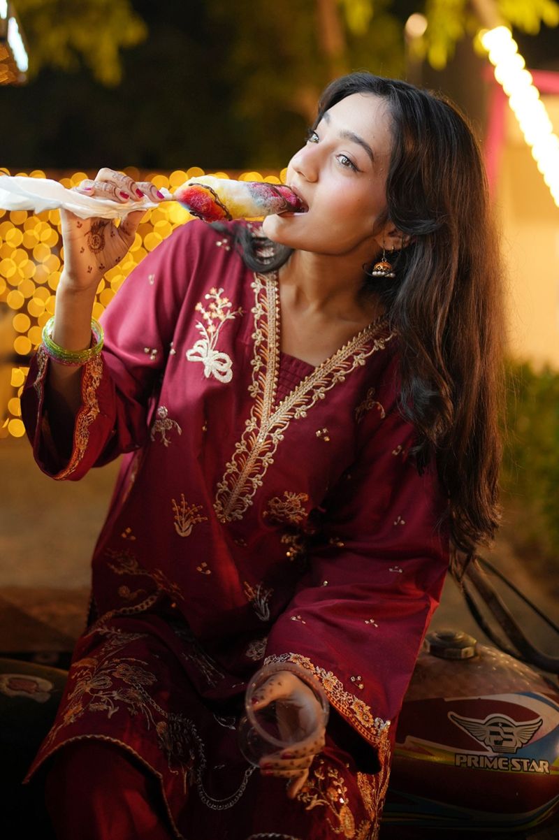 Embroidered Raw Silk Red 2PC