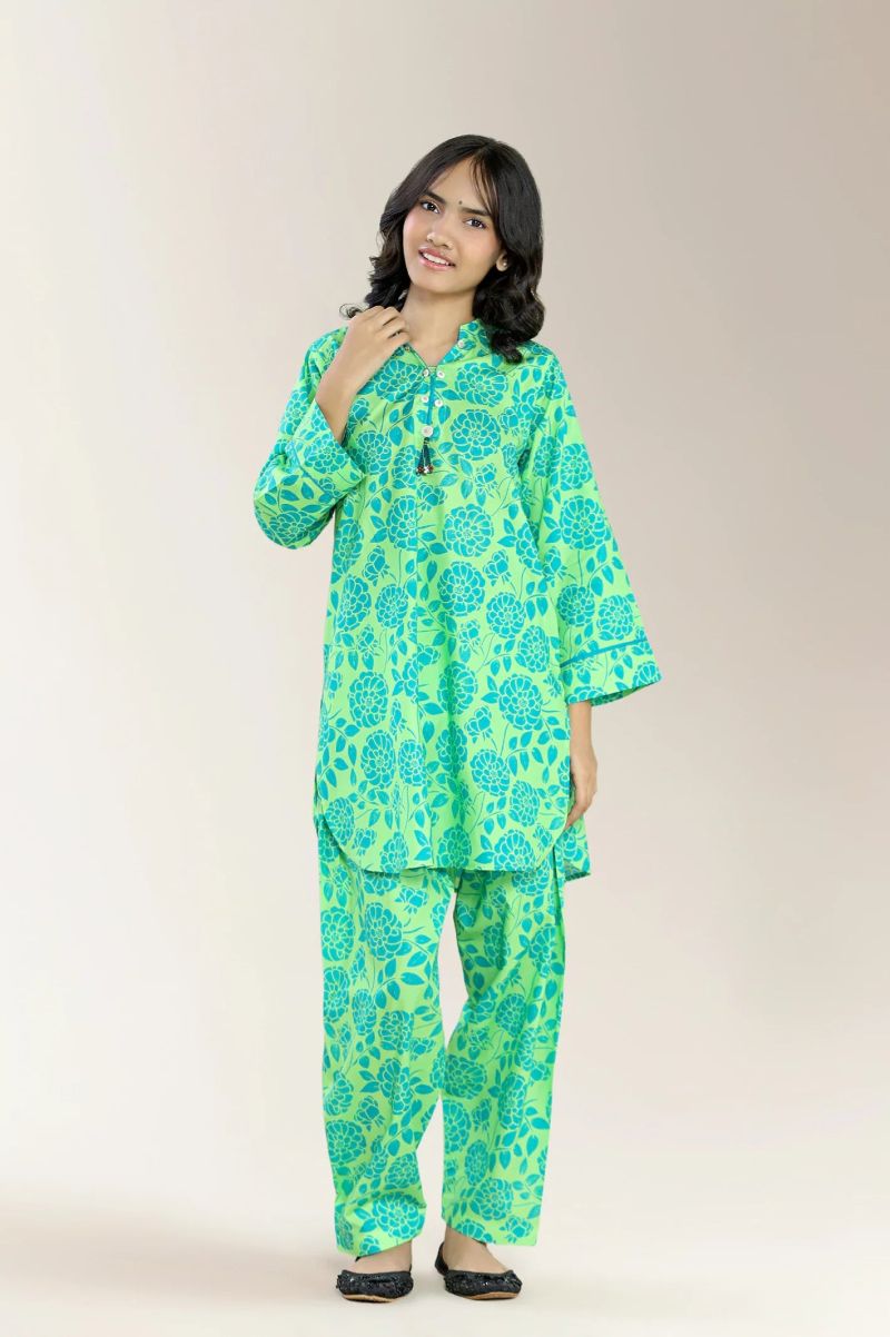 Printed Cambric Green Teens 2PC