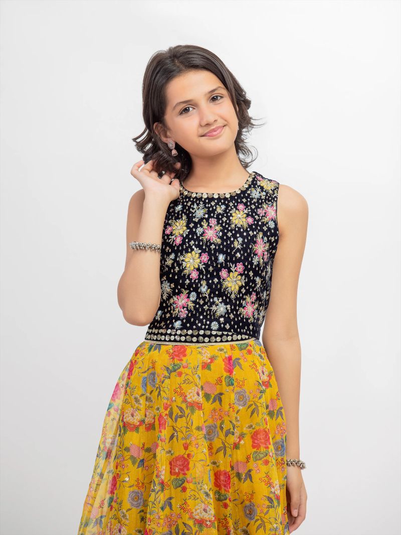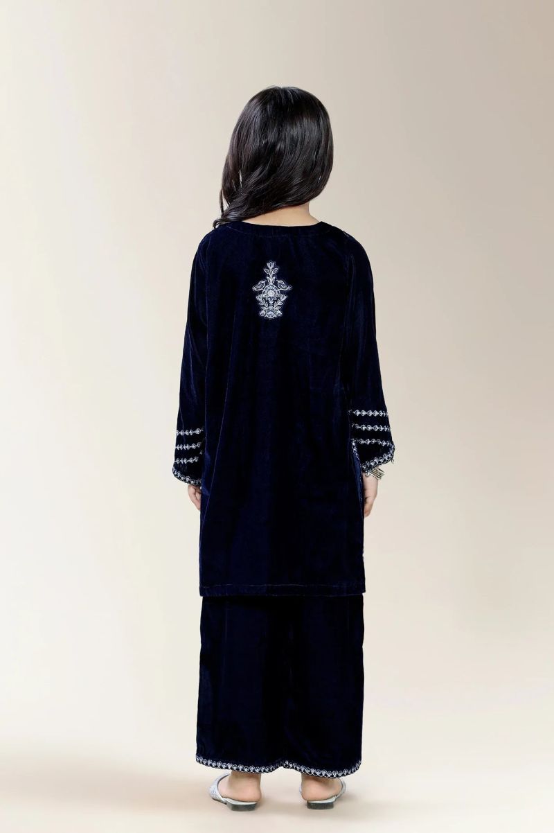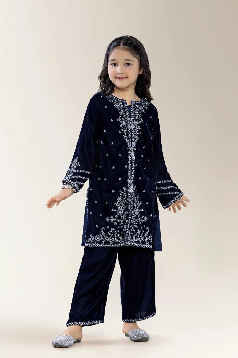 Embroidered Velvet Blue Girls 2PC