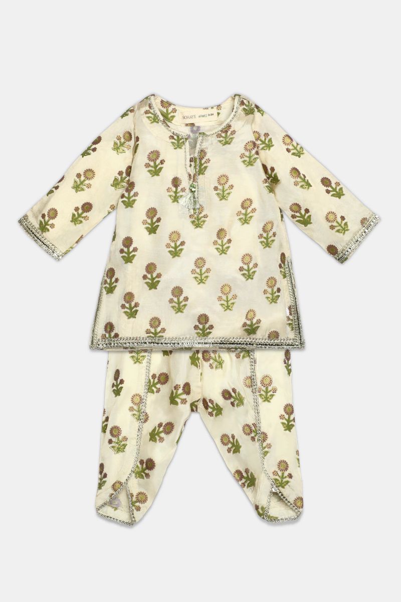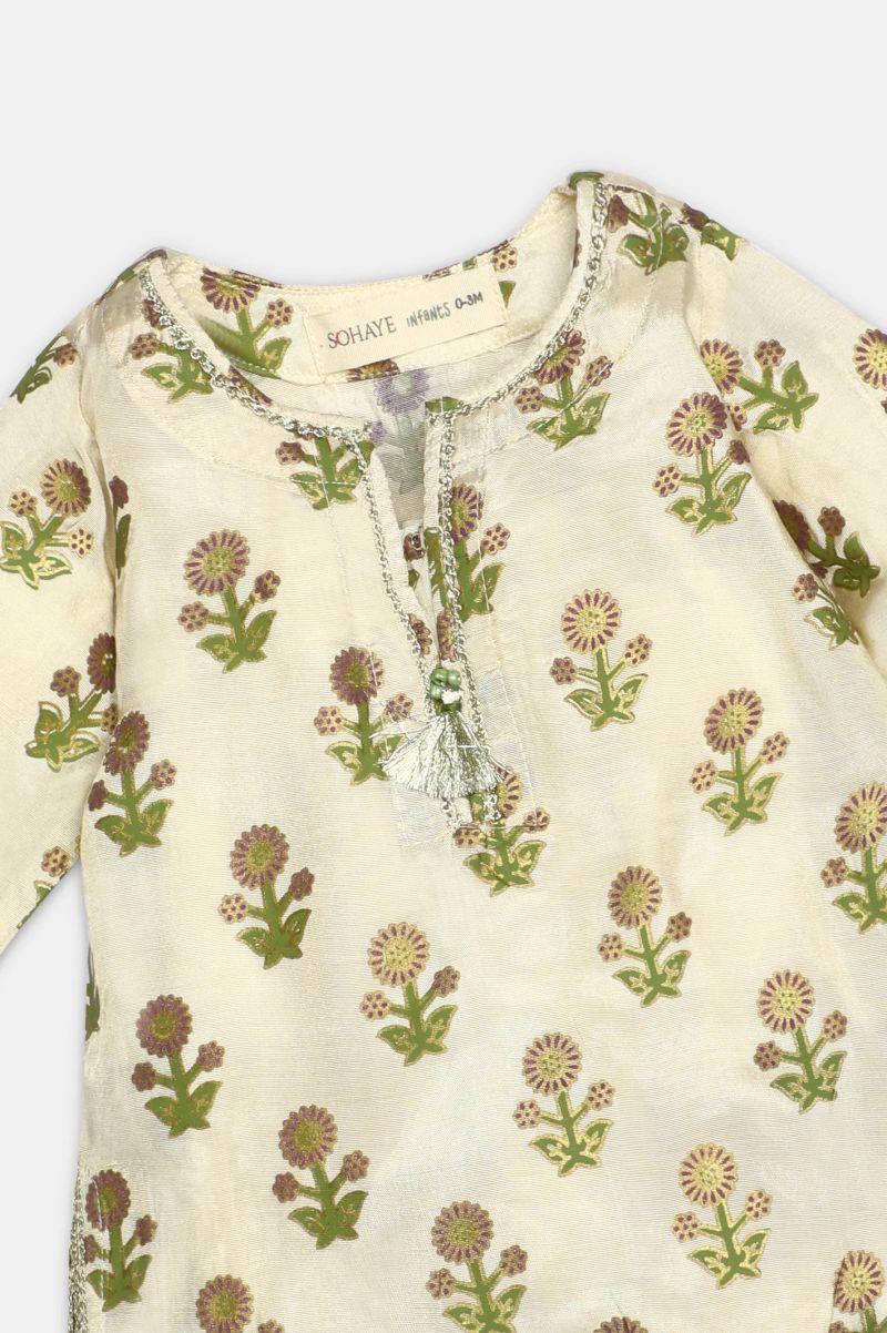 Beige Block Printed Infant 2PC