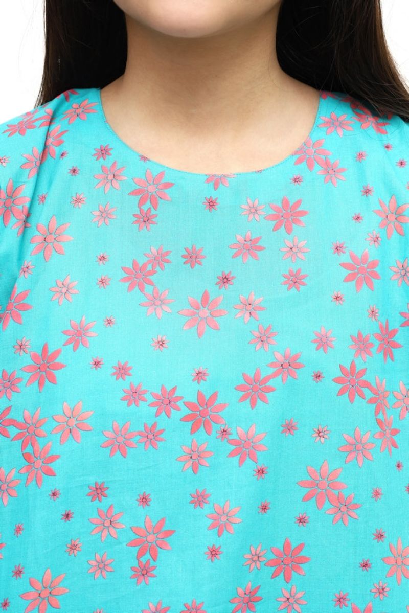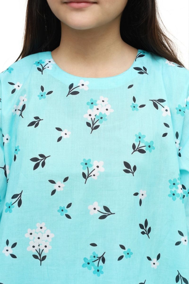 Plum Digital Lawn Sky Blue Colour Printed Black White Flowers on 2 Pc stitched suit for Girls.
