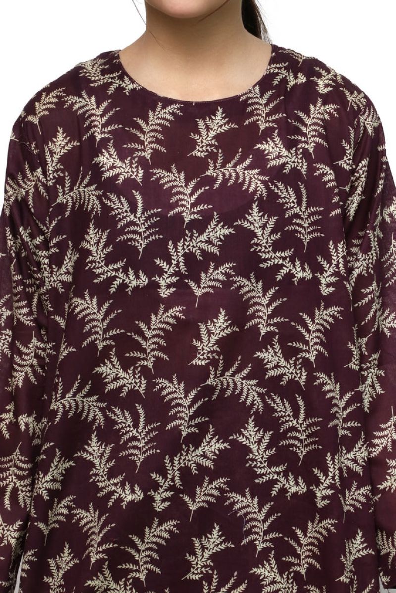 Plum Digital Lawn Maroon Colour Printed Beige Leaves on 2 Pc stitched suit for Girls