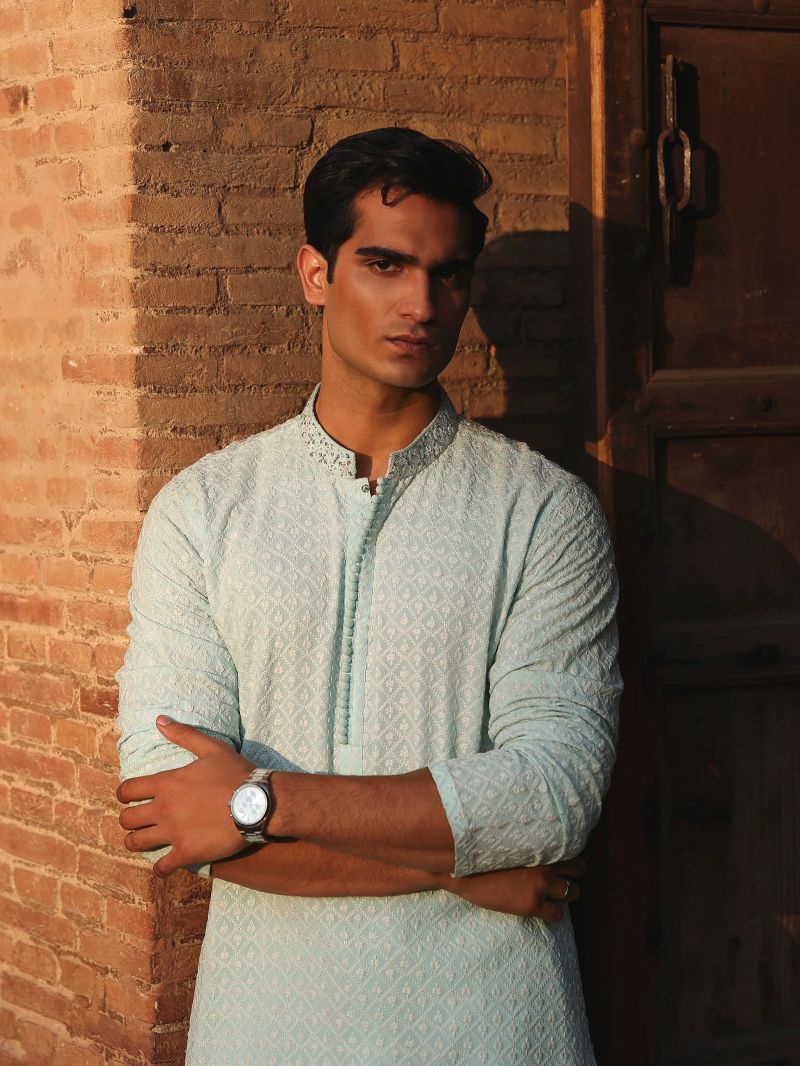 Navy Blue Wash & Wear Kurta Pajama