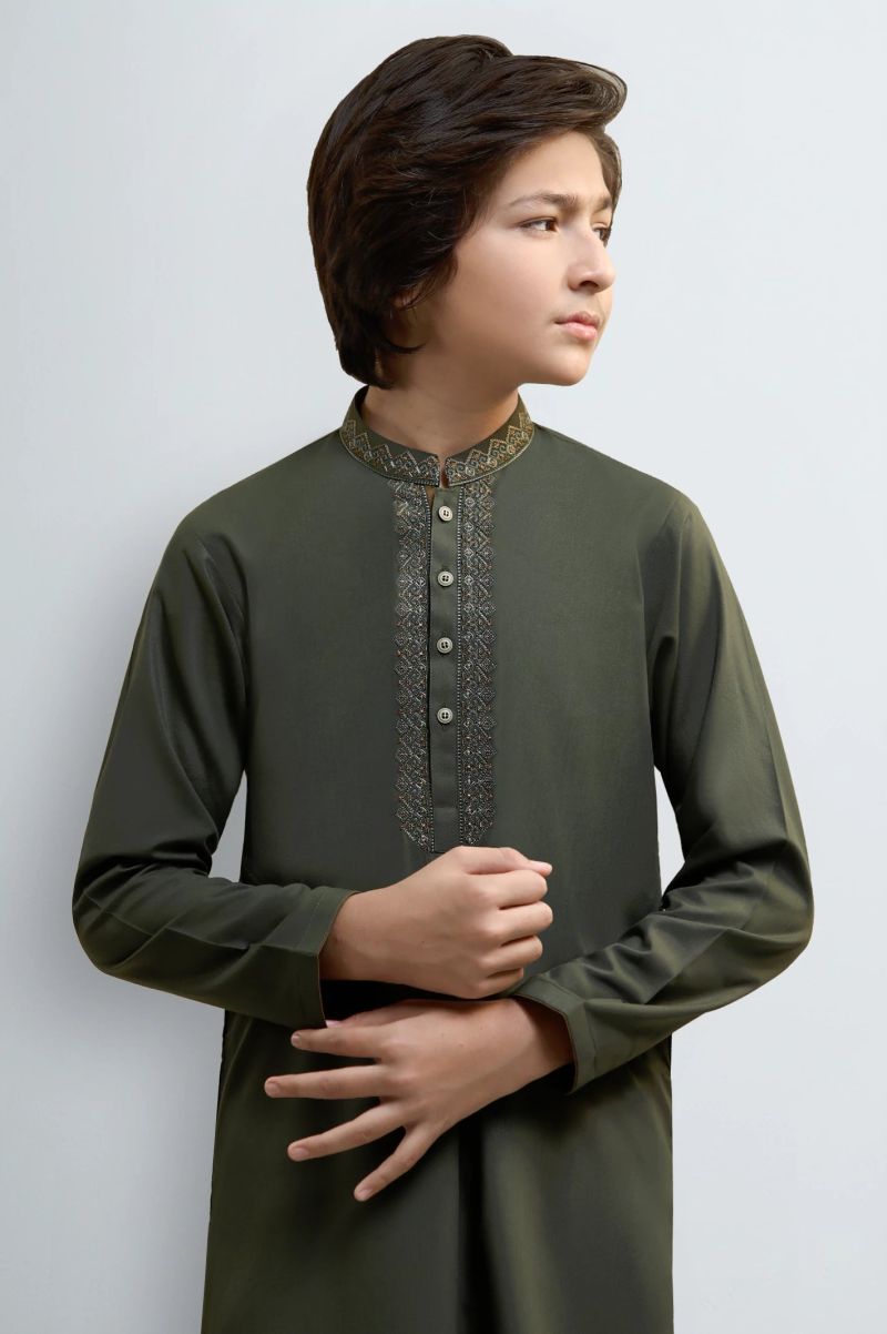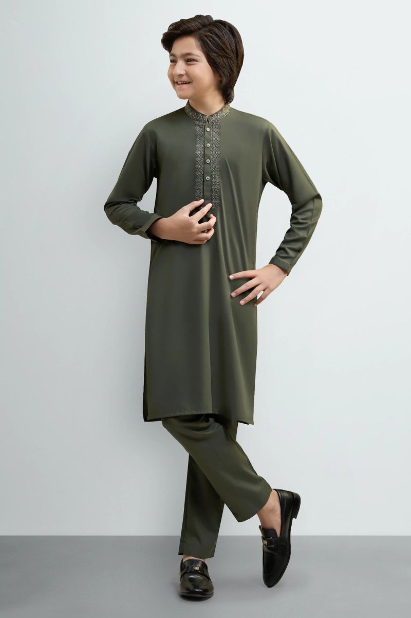 Dark Olive Teens Kurta Pajama