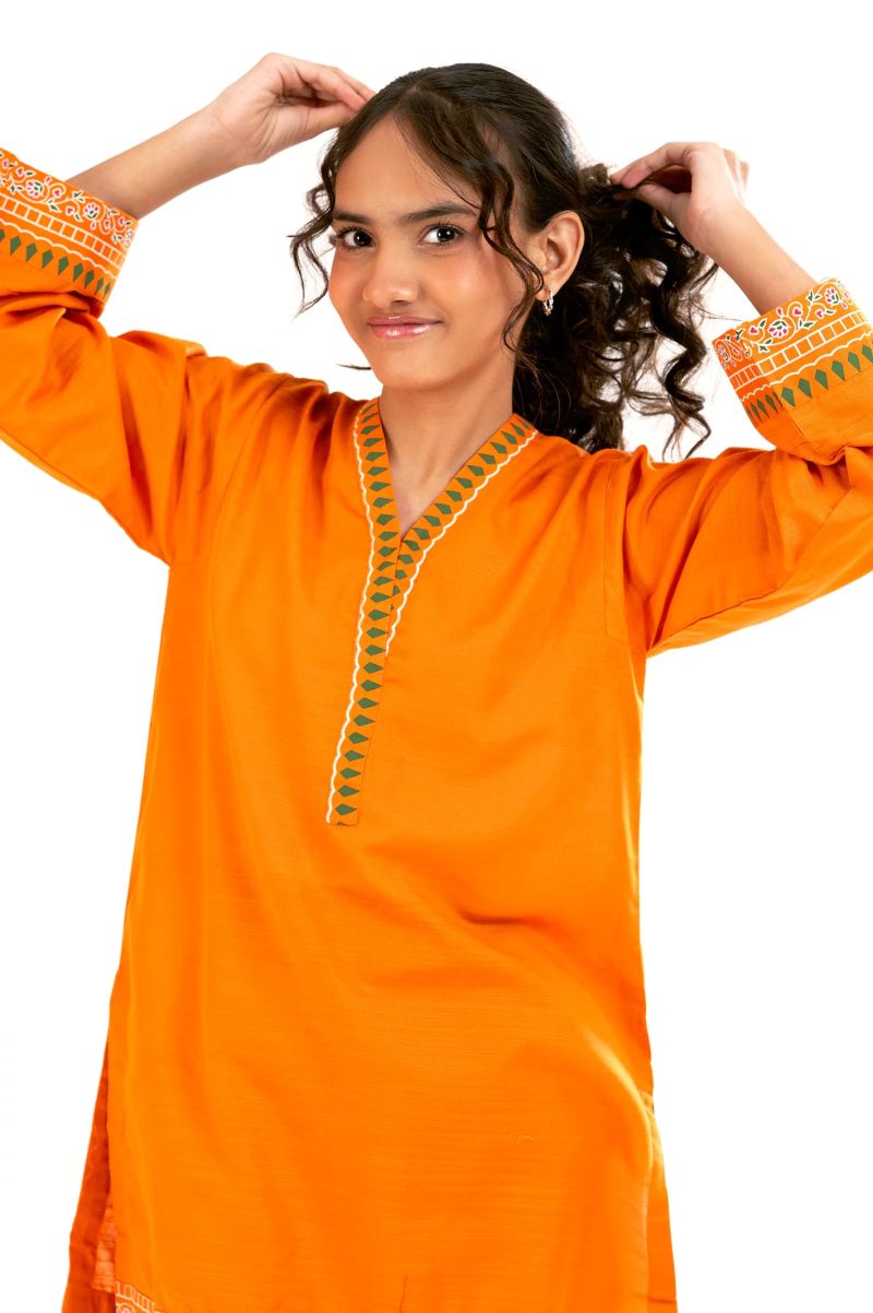 Orange Block Printed Teens 2PC