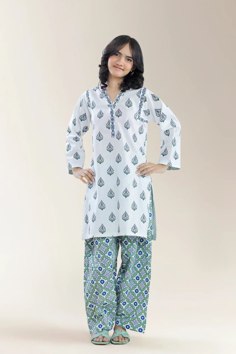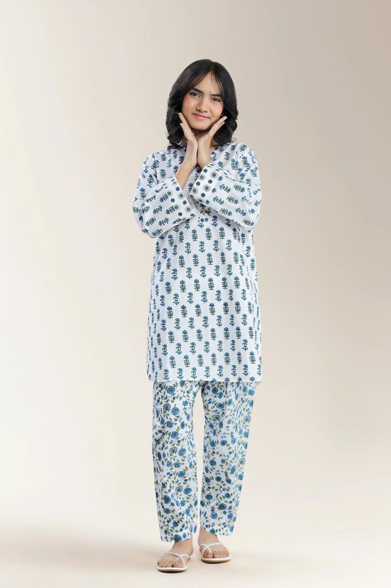 Printed Cambric White Teens 2Pc