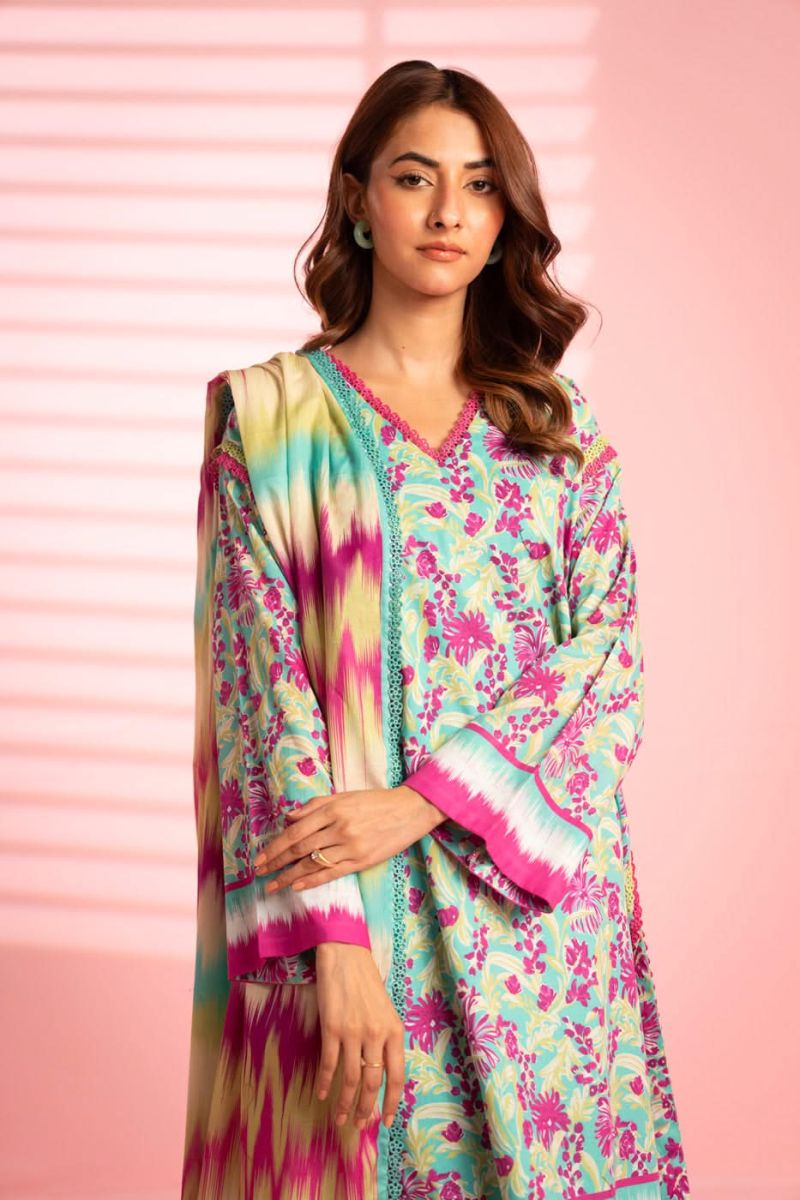 Pink Printed Unstitched 2PC