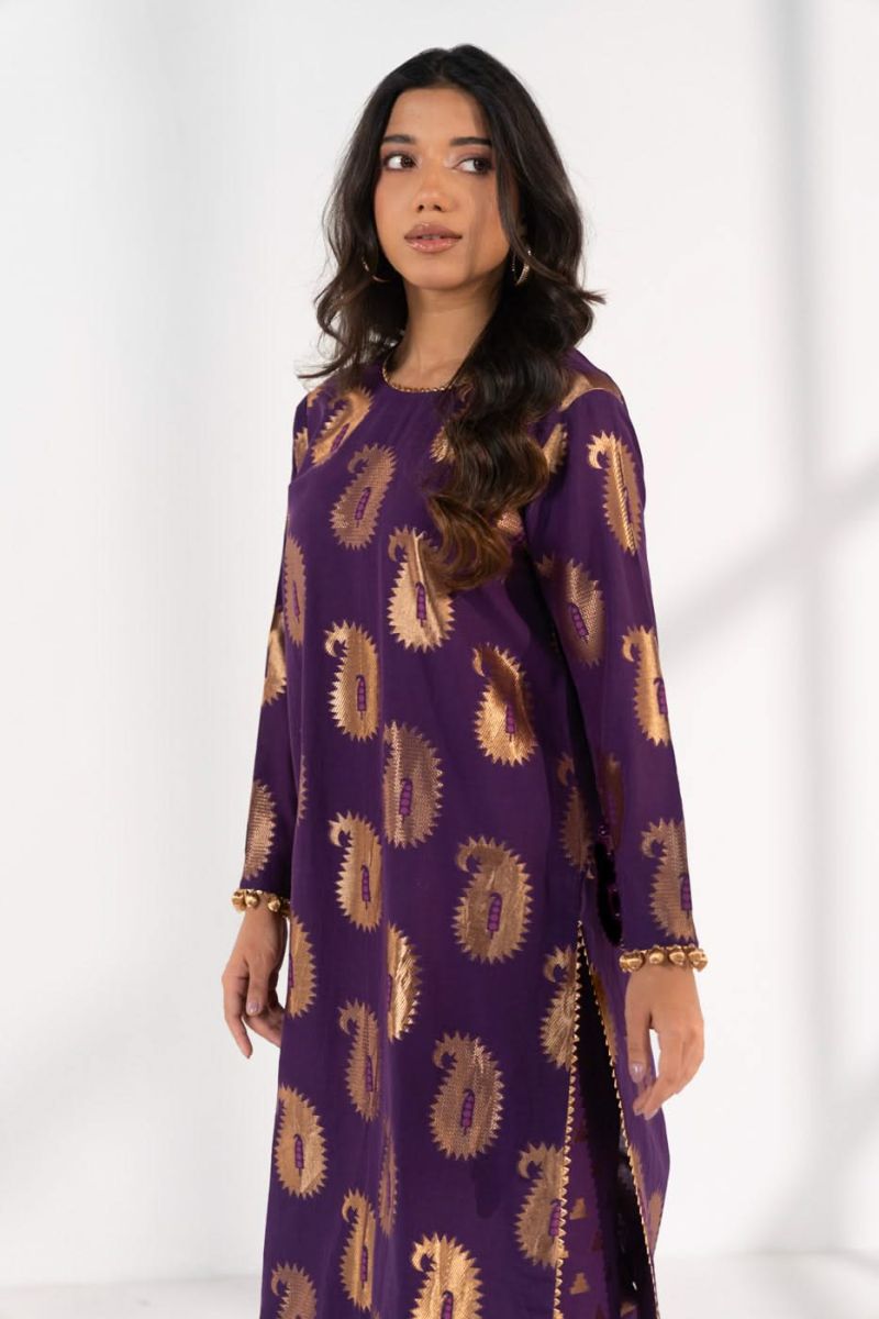 Brown Embroidered Unstitched 2PC