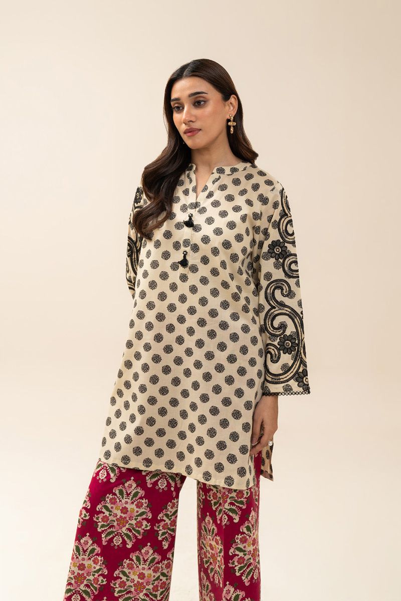 2 PIECE PRINTED LAWN SUIT-POLKA PETALS (UNSTITCHED)