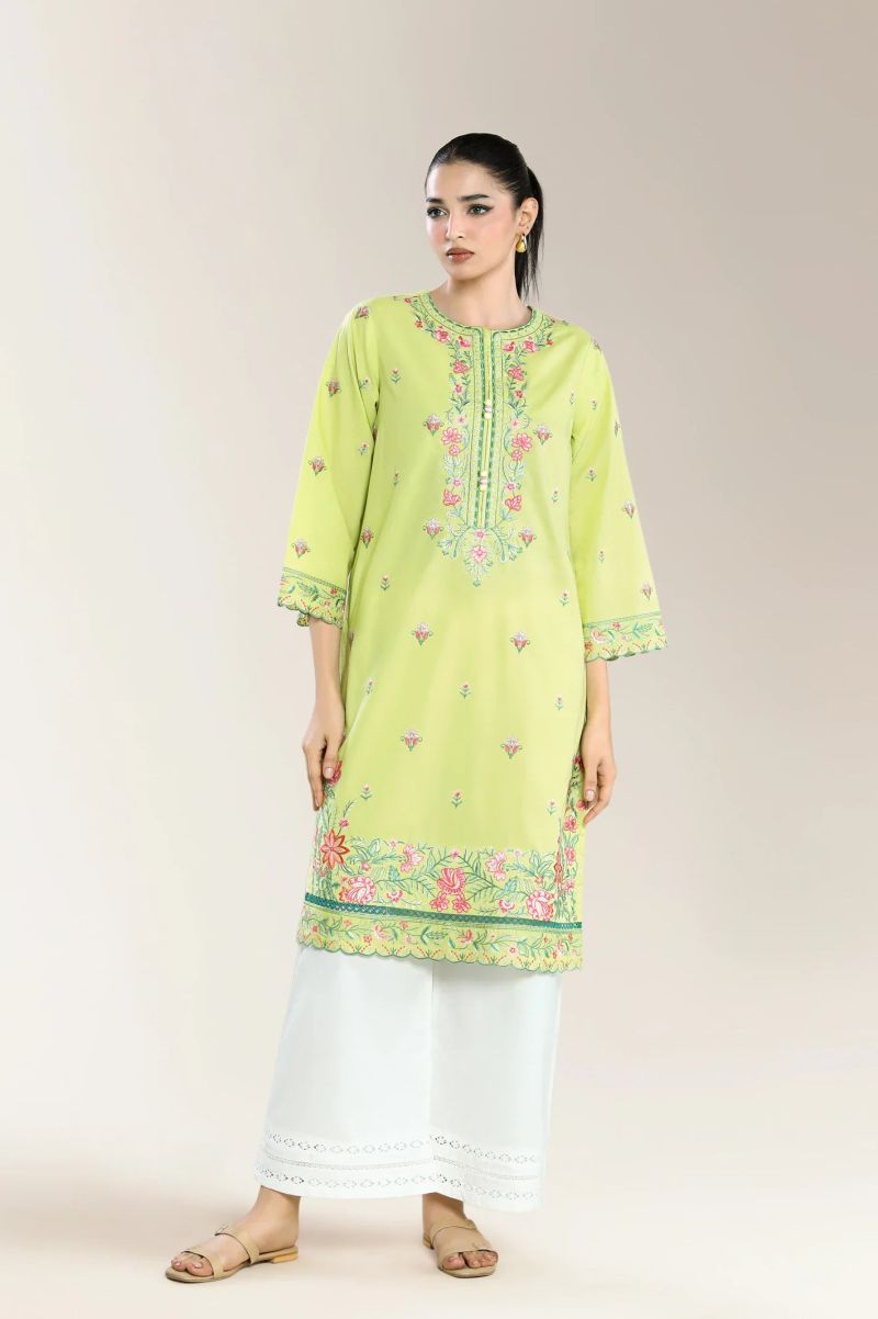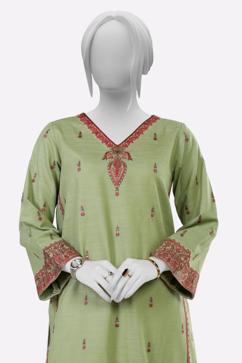 Dyed Embroidered Cambric-Parrot Green Shirt