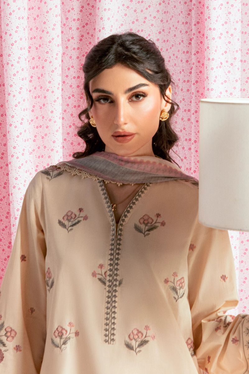 Beige Embroidered 3PC Unstitched