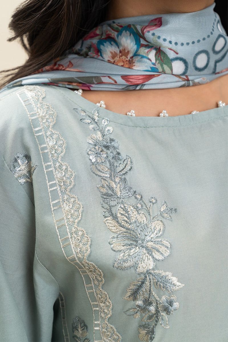 Plum 100% Cotton Lawn Black Colour Printed Sea Green Flowers Embroidered Sea Green threads On Stitched 2 pc suit for Girls.