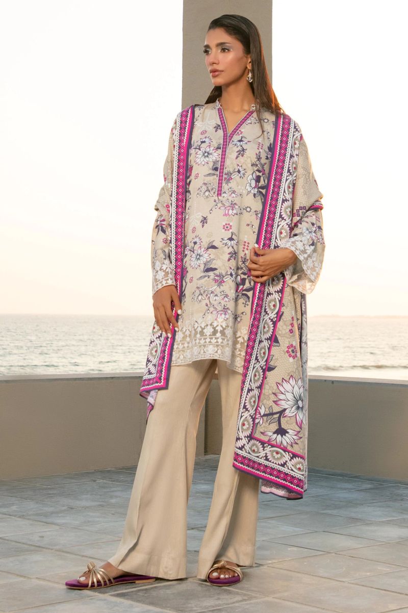 Beige Printed 3PC Unstitched
