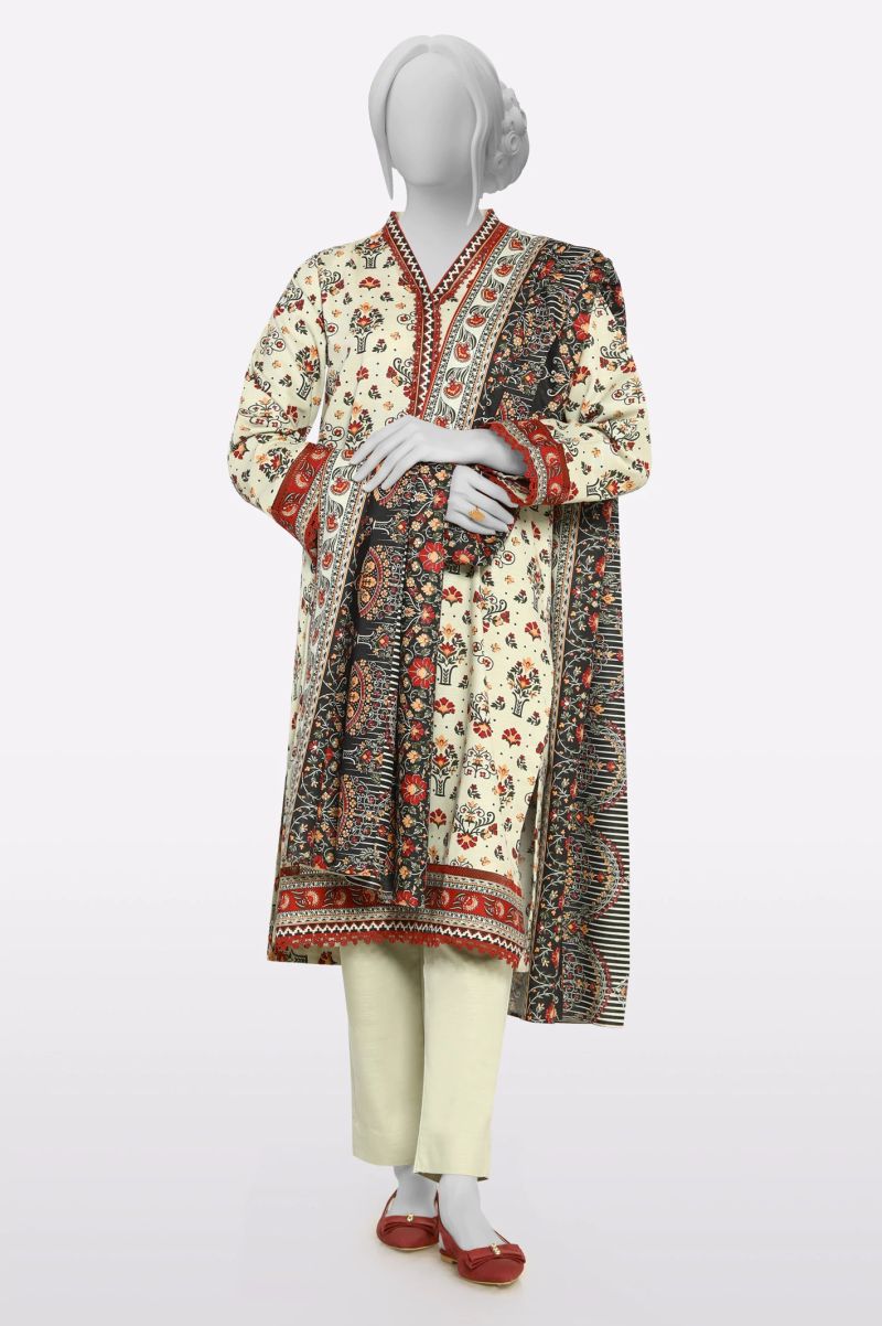 Beige Embroidered 3PC Unstitched