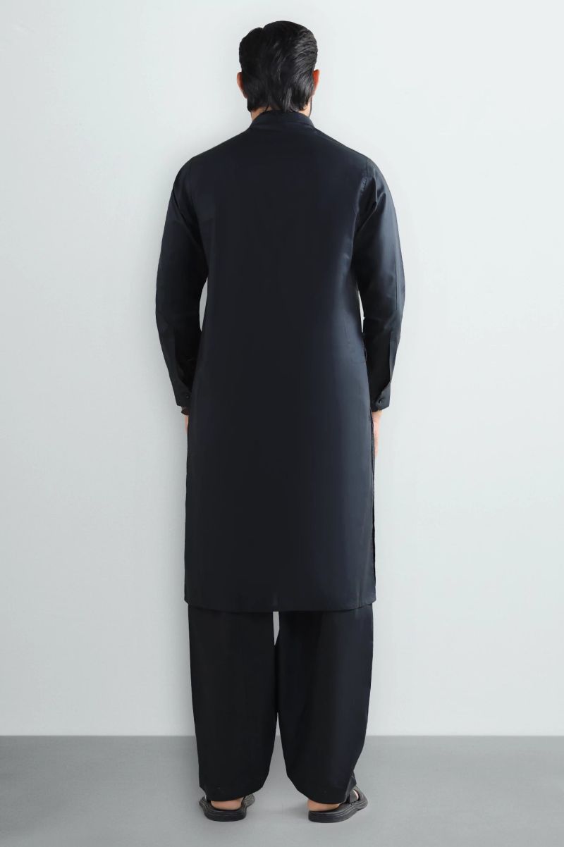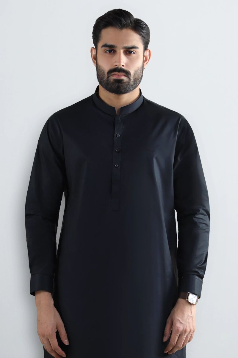 Plum 100% Cotton Lawn Black Colour Printed Golden Flowers Embroidered Golden threads On Stitched 2 pc suit for Girls.