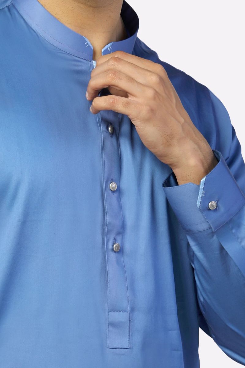Plum Fine Lawn Dark Yellow Colour Printed Coral Blue Blossoms On 2 pc suit For Girls.