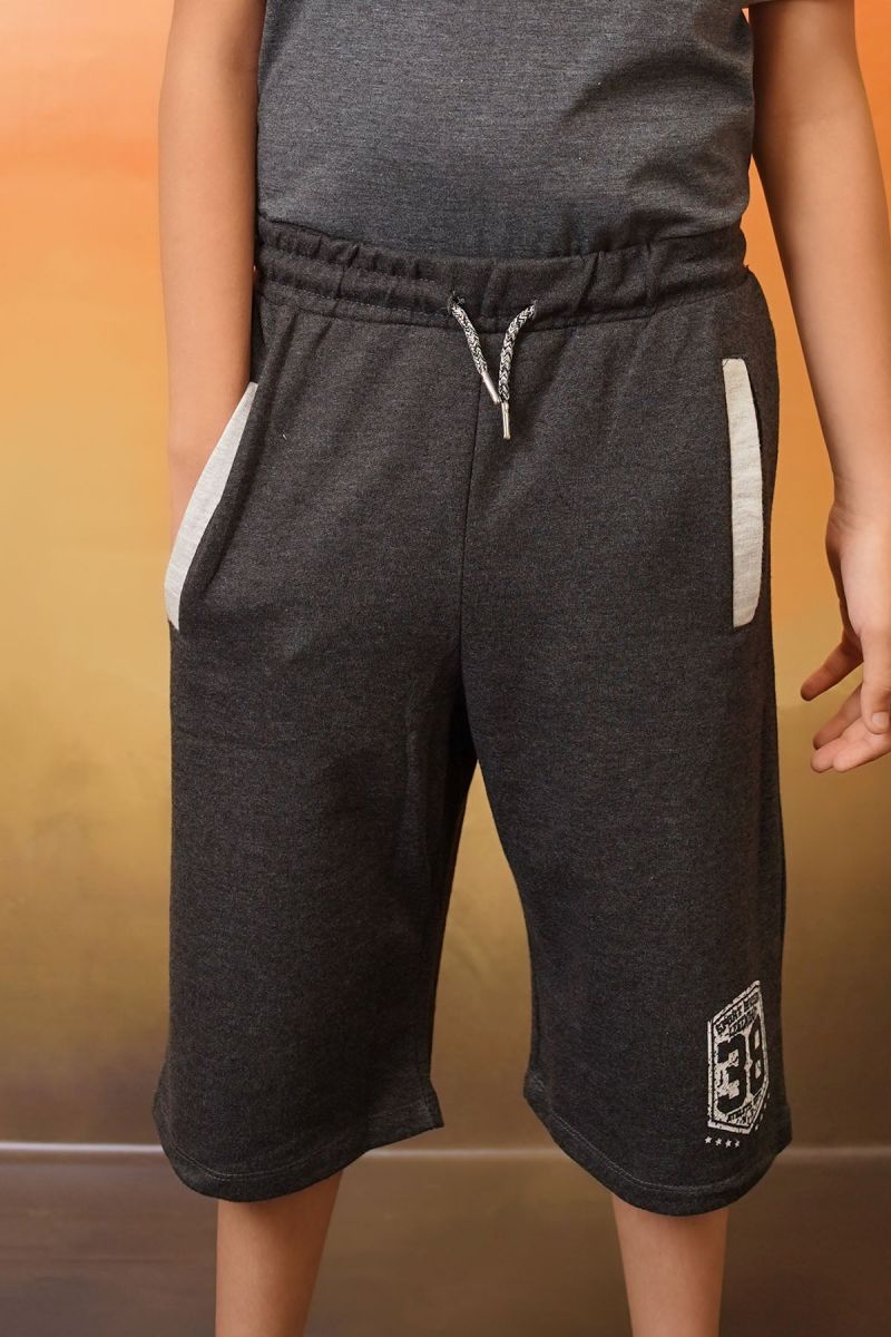 Black Cotton Terry Printed Boy's Shorts