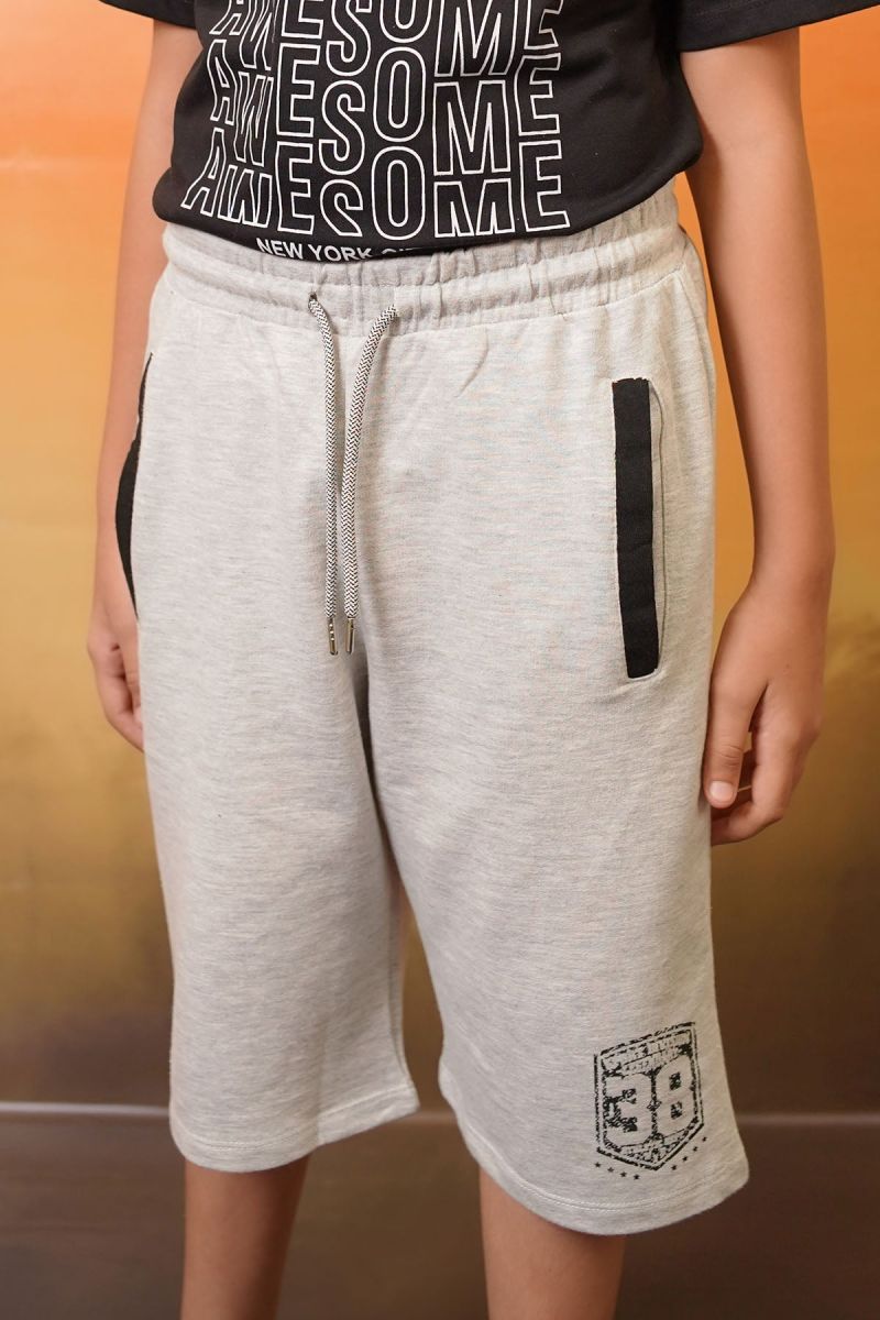 Heather Grey Cotton Terry Printed Boy's Shorts