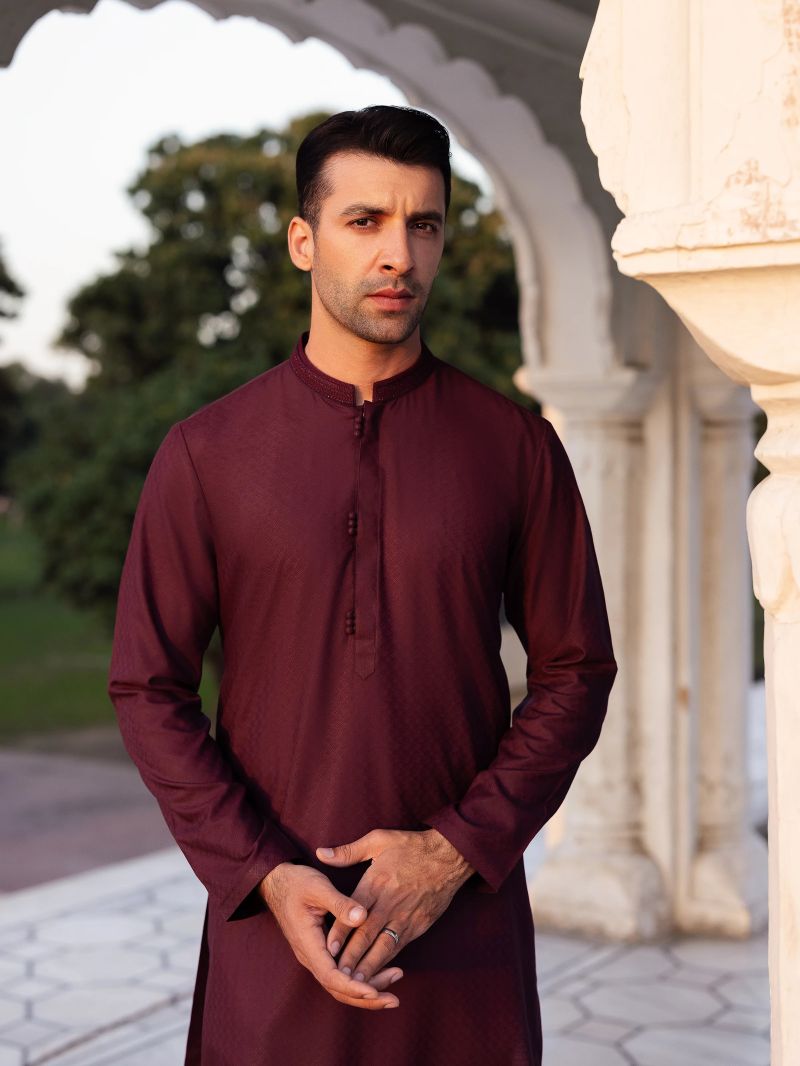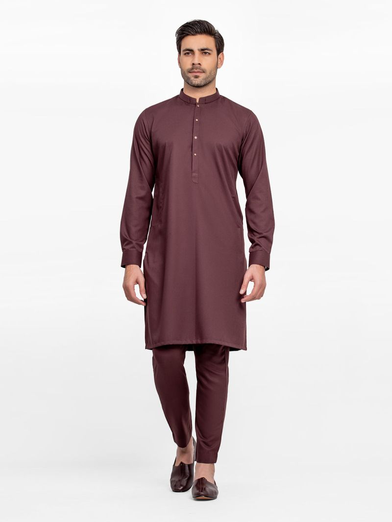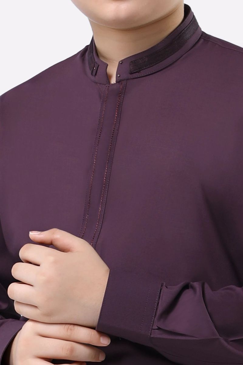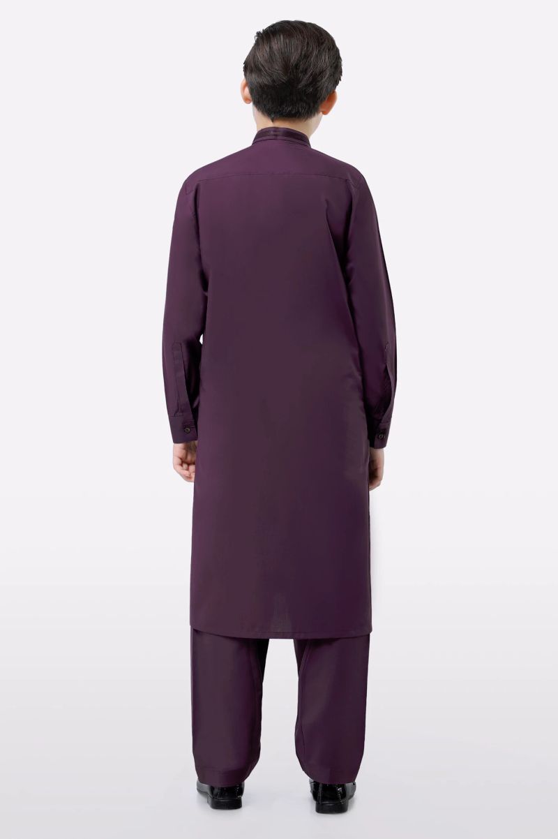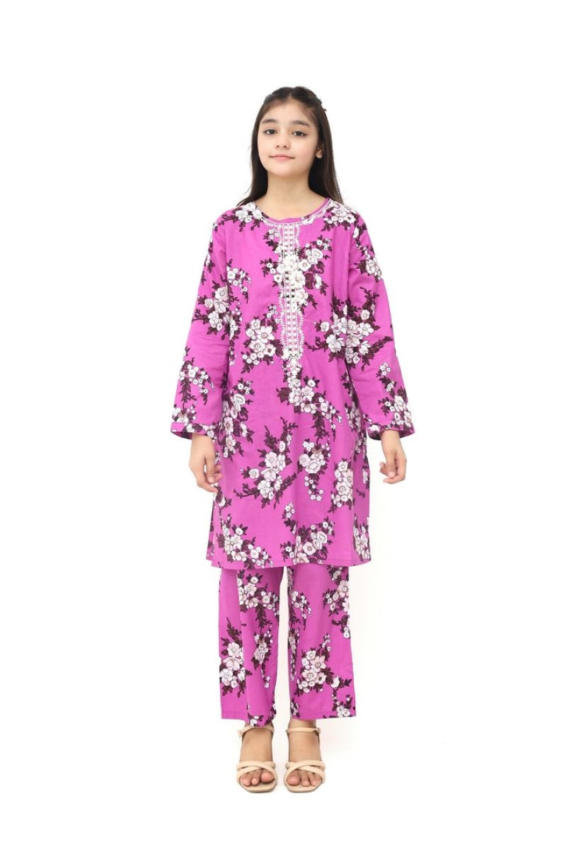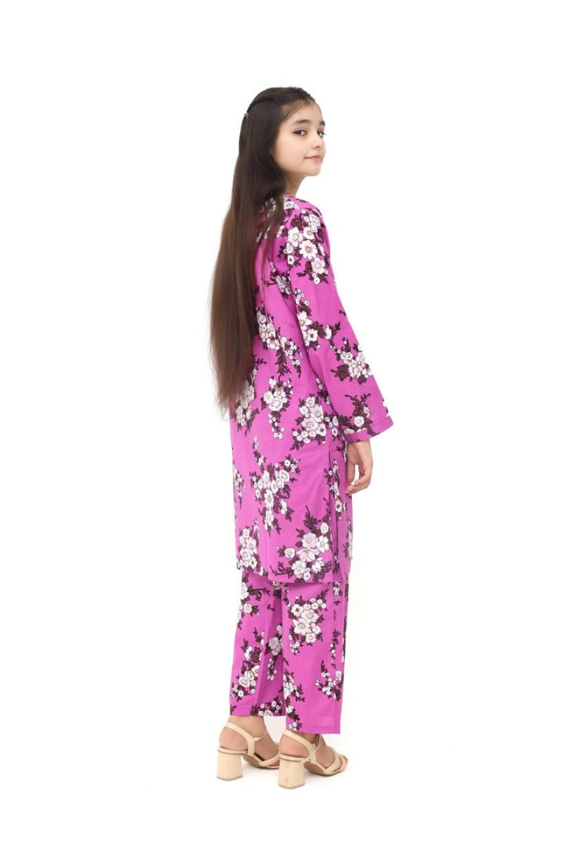 Plum 100% Cotton Lawn Purple Colour Printed White Burgundy Flowers Embroidered White threads On Stitched 2 pc suit for Girls.