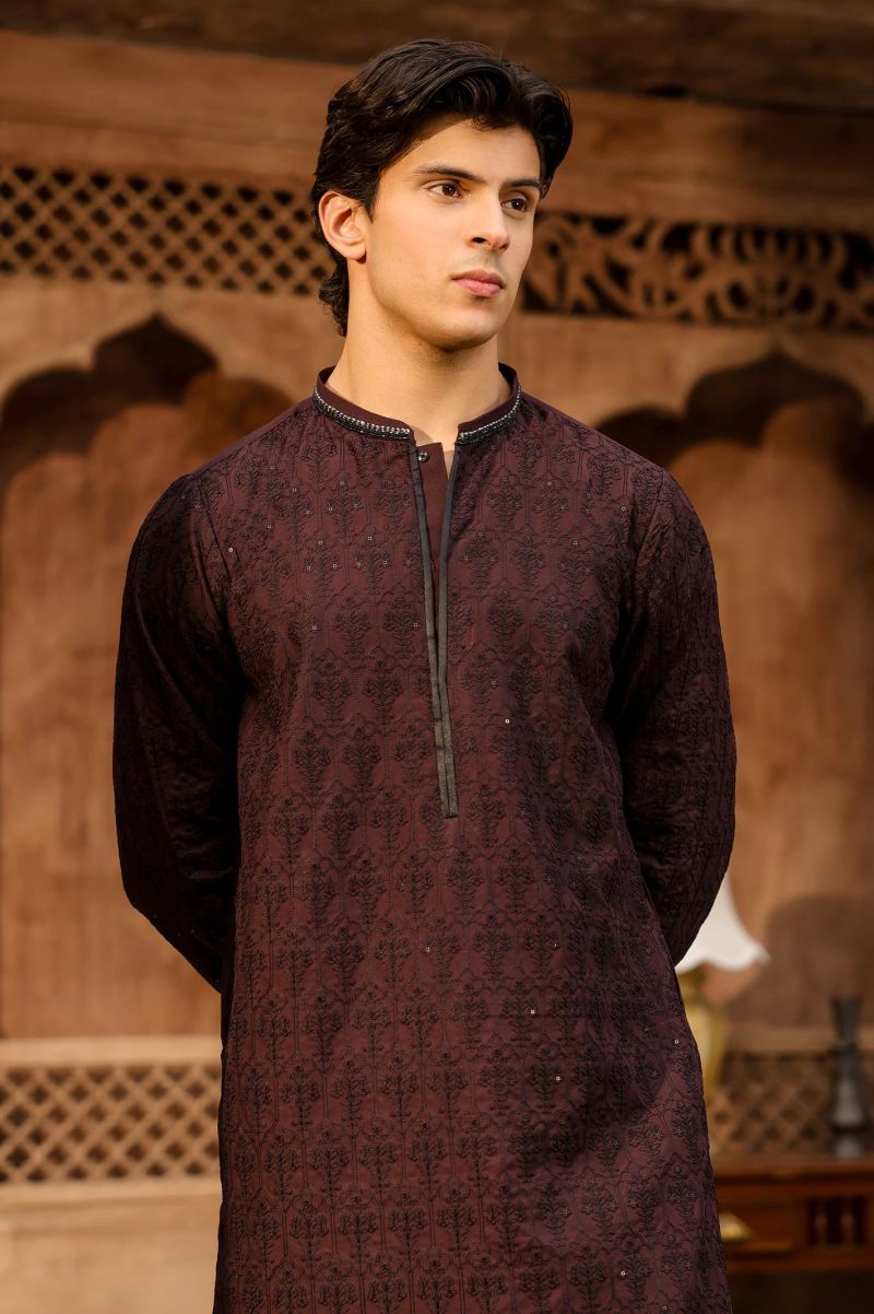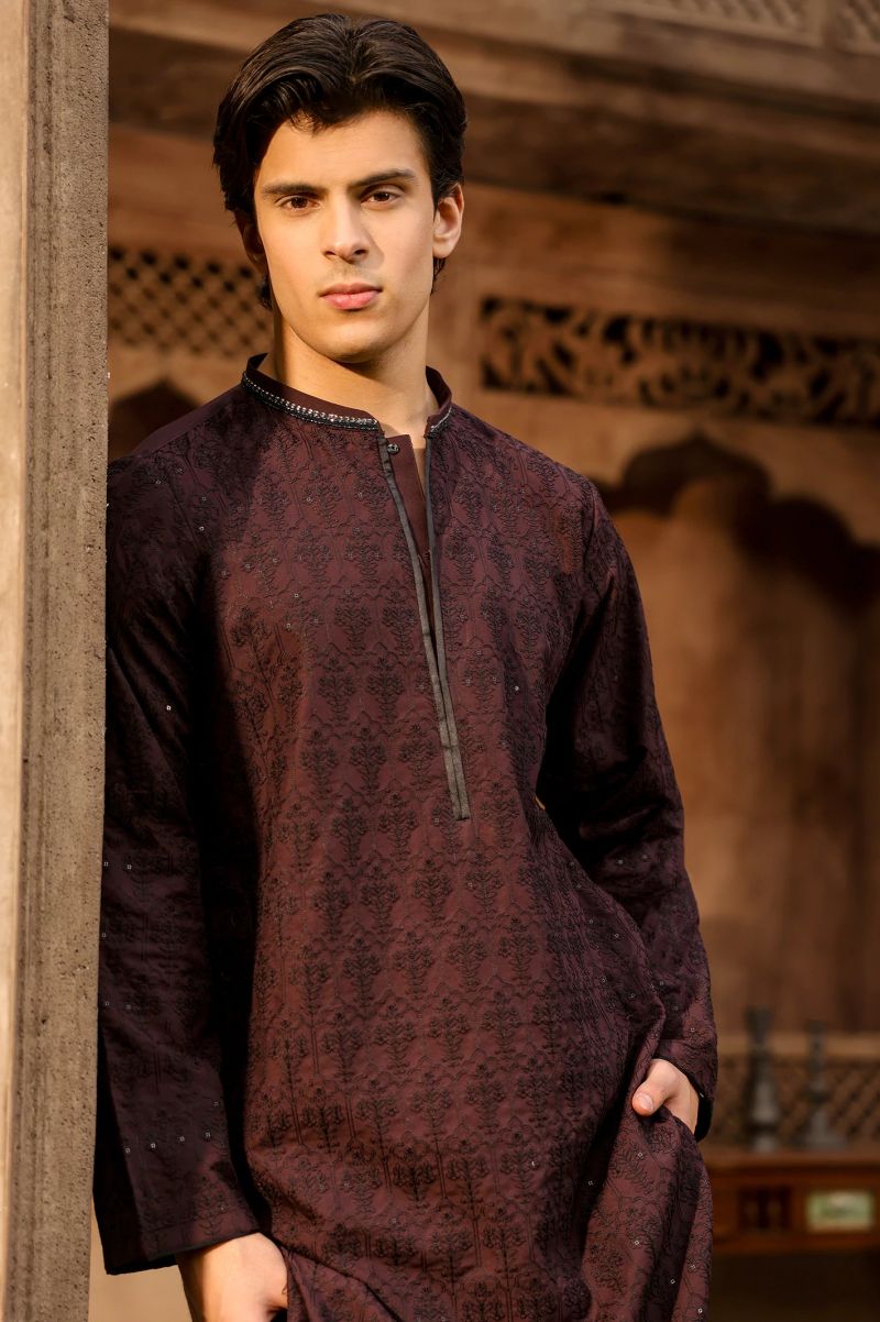 Plum Digital Lawn Off White Colour Printed Burgundy Leaves on 2 Pc stitched suit for Girls.