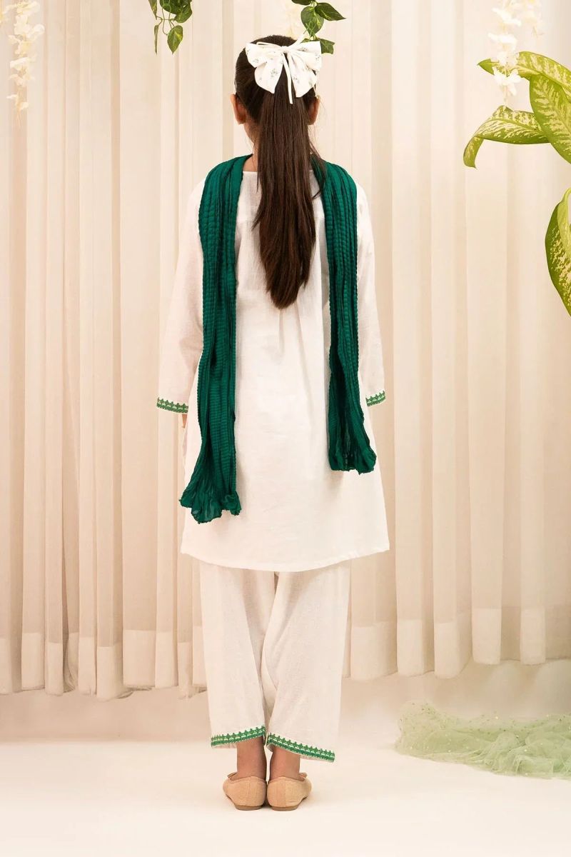 Bottom: White Textured Chambray Cotton Trouser With Embroidery