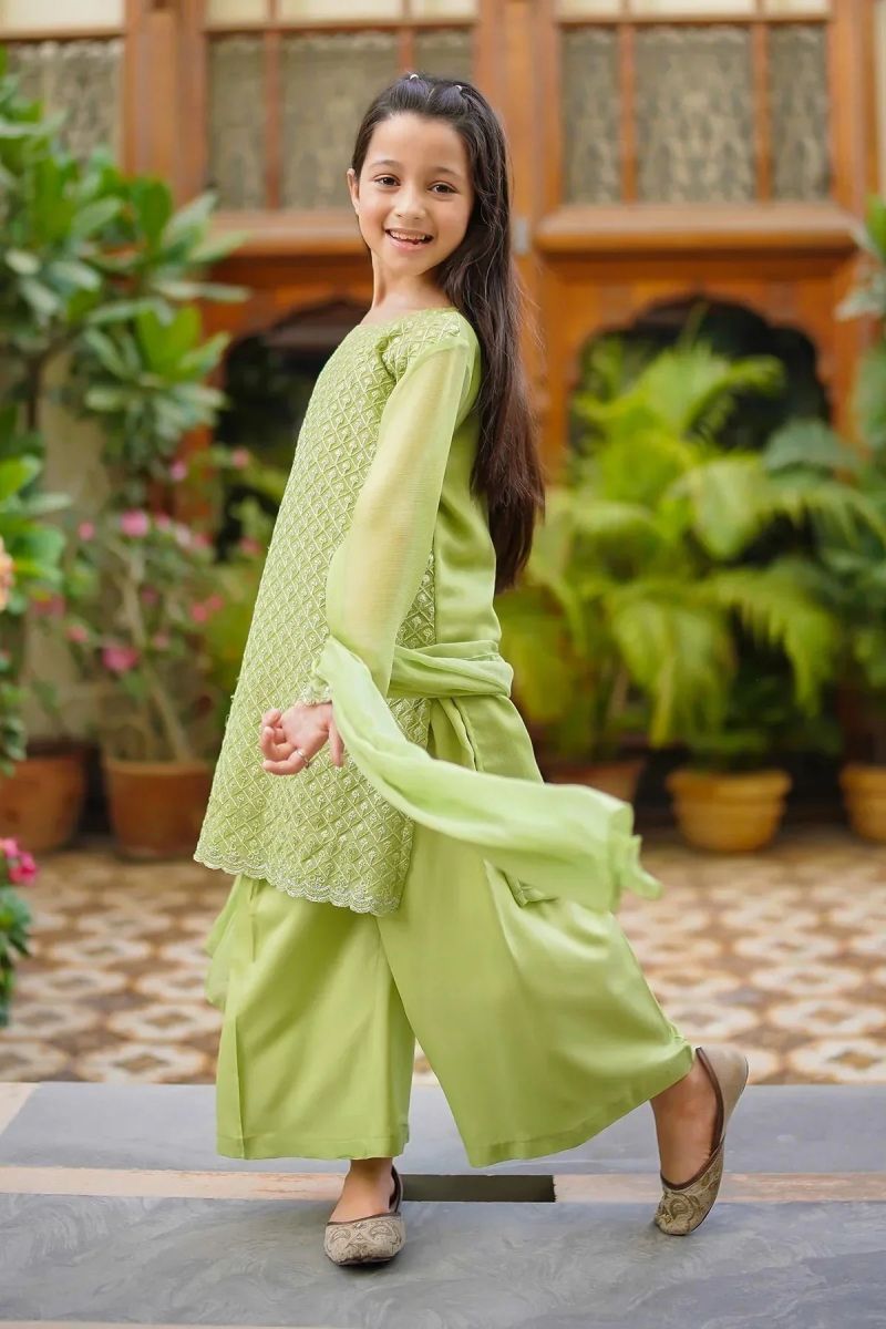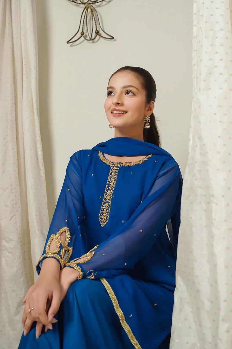 Bottom: Tiffany Blue Malai Crepe Trouser With Embroidery