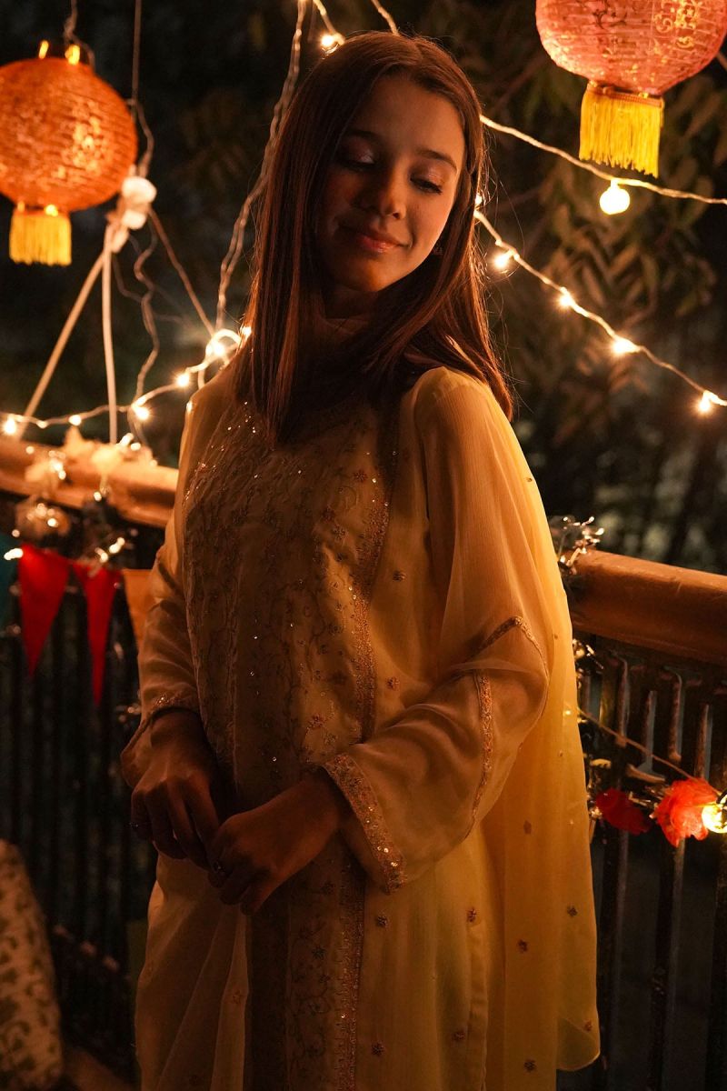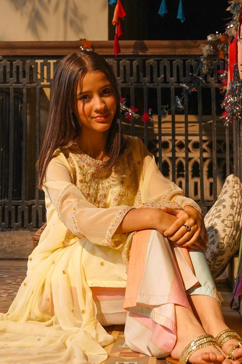 Bottom: Lemon Yellow Malai Crepe Digital Printed Dhaka Pants