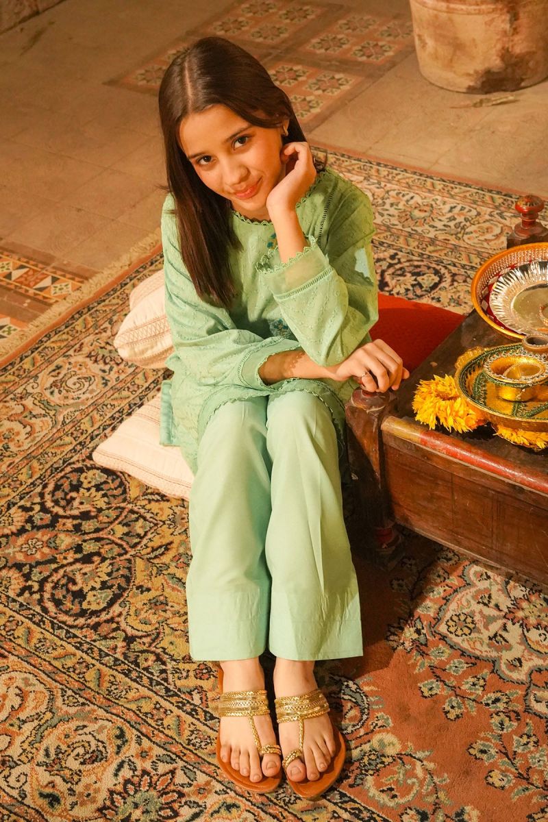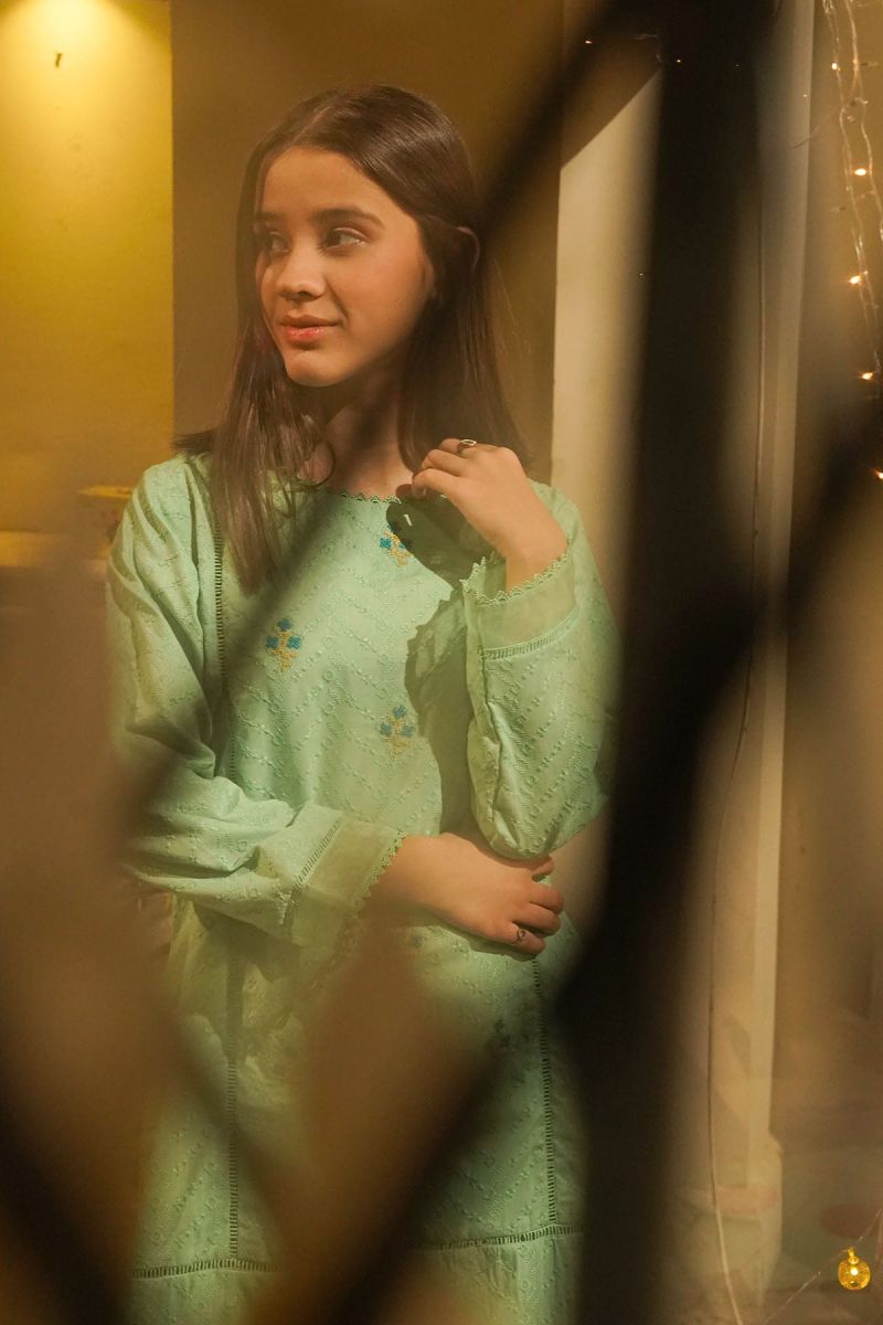 Top: Mint Chikankari Kurta With Embroidery, Organza and Laces