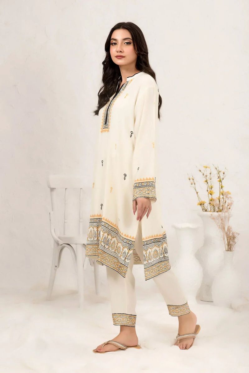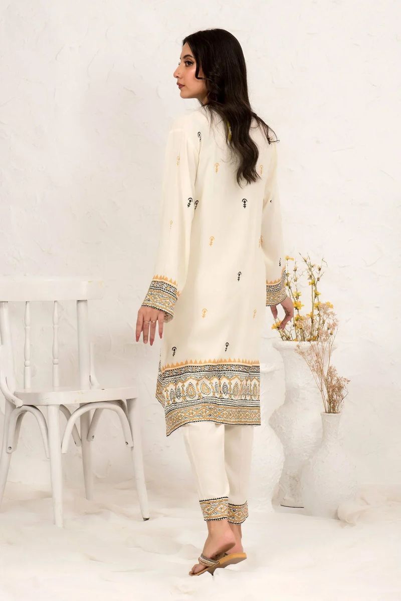 Top: Ivory White Cotton Crepe Block Printed Kurta