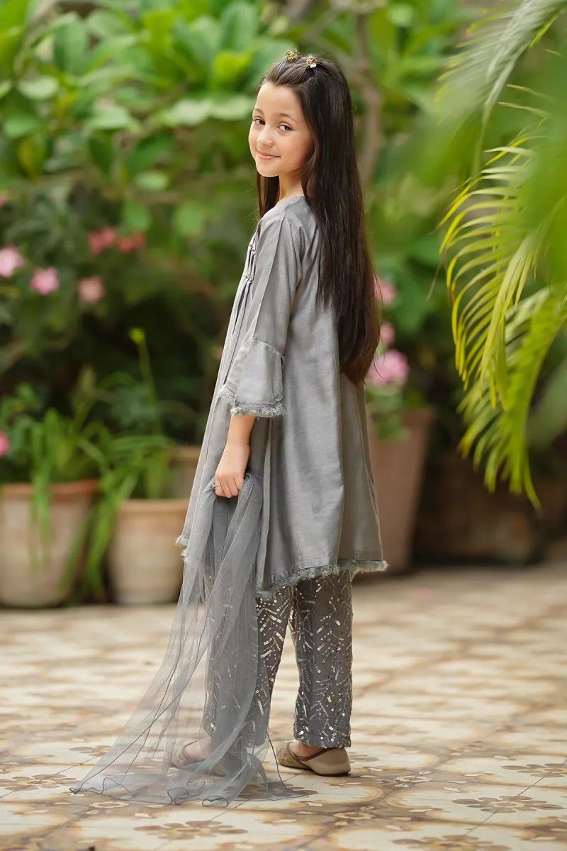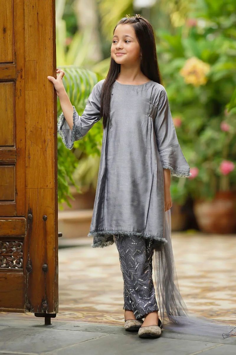Bottom: Grey Sequence Net Trouser With Grey Malai Crepe Lining