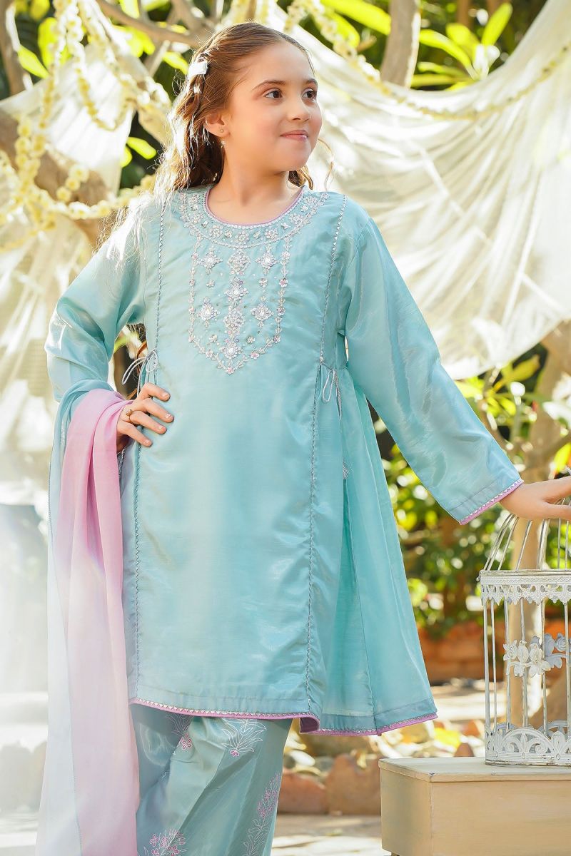 Top: Sky Blue Cotton Silk Kurta With Hand Adda Work and Gota Laces