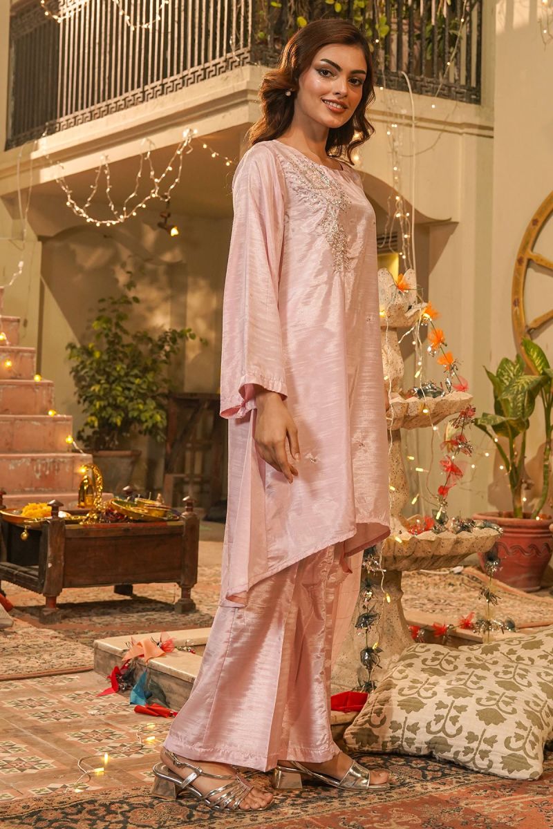 Top: Lilac Cotton Silk Kurta With Hand Adda Work