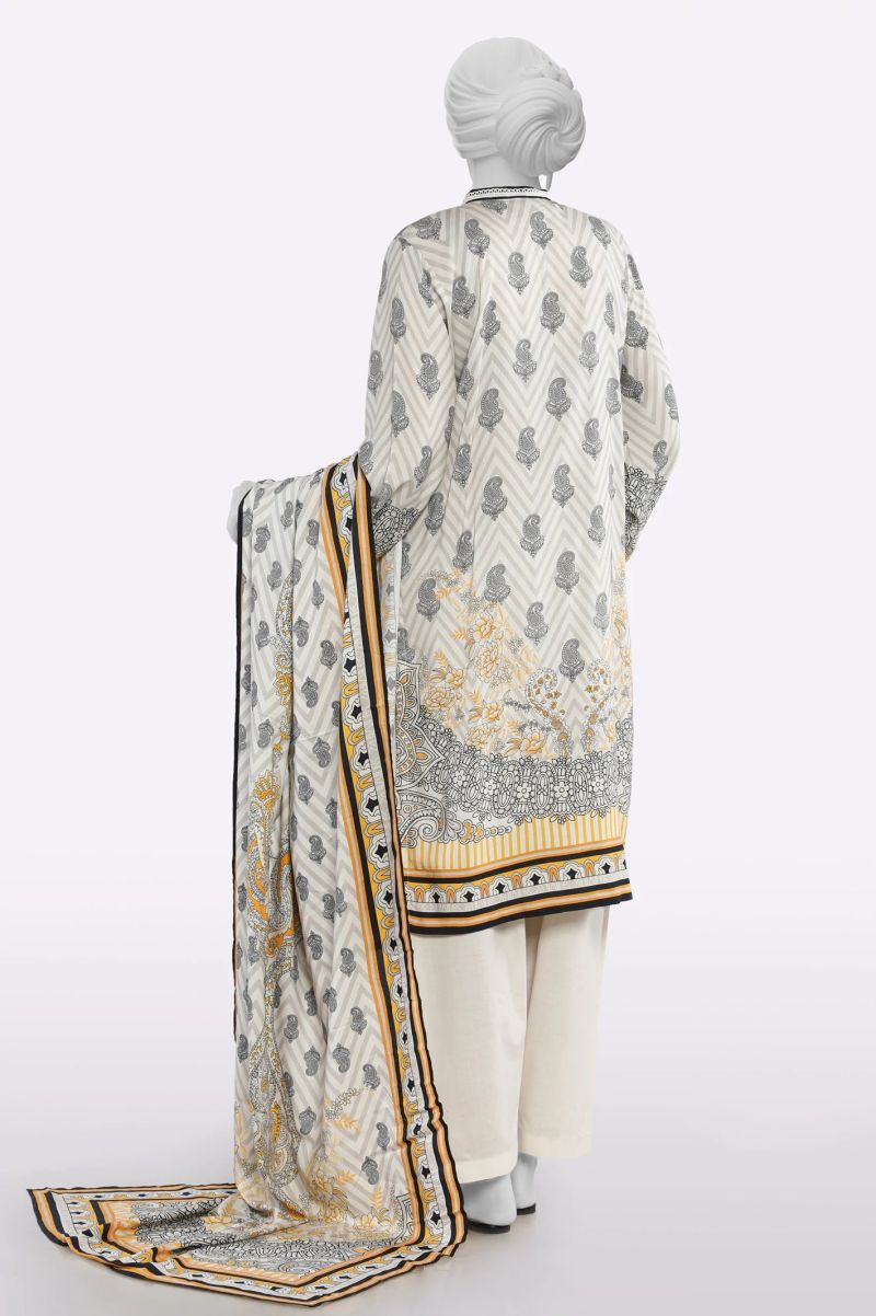 Cream Printed Unstitched 3PC