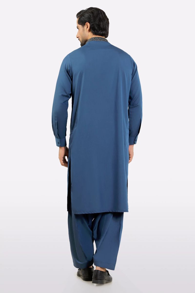 Plum 100% Cotton Lawn Dark Bue Colour Printed Yellow Green Flowers Embroidered Yellow threads On Stitched 2 pc suit for Girls.