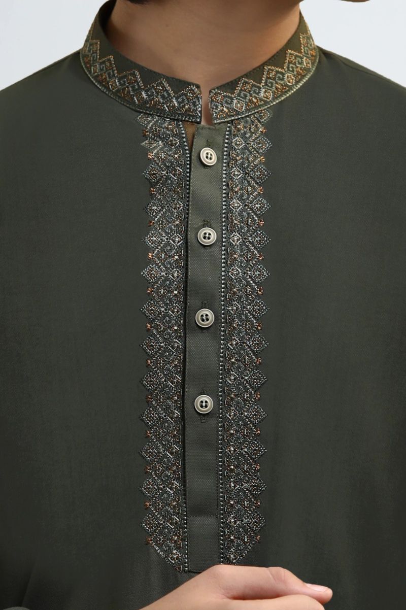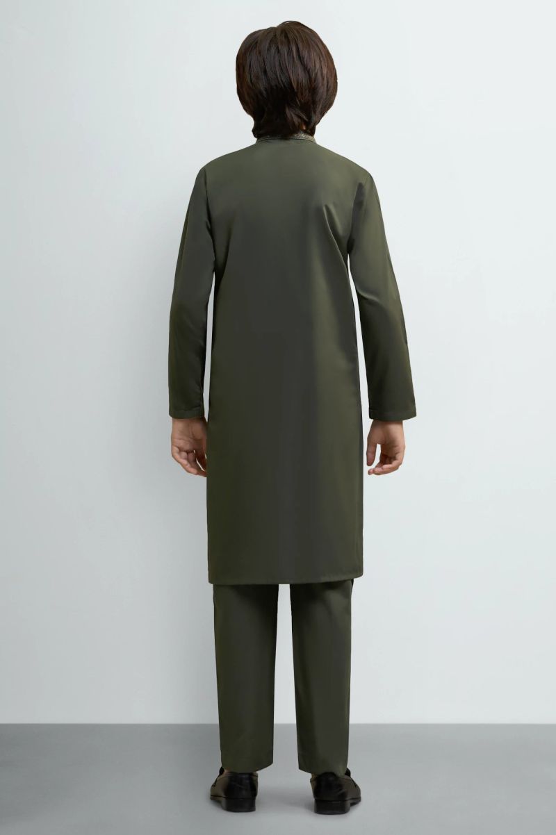 Dark Olive Teens Kurta Pajama | Khass Collection