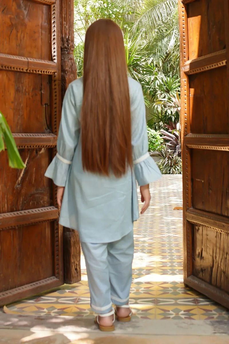 Bottom: Blue Cotton Trouser with Laces