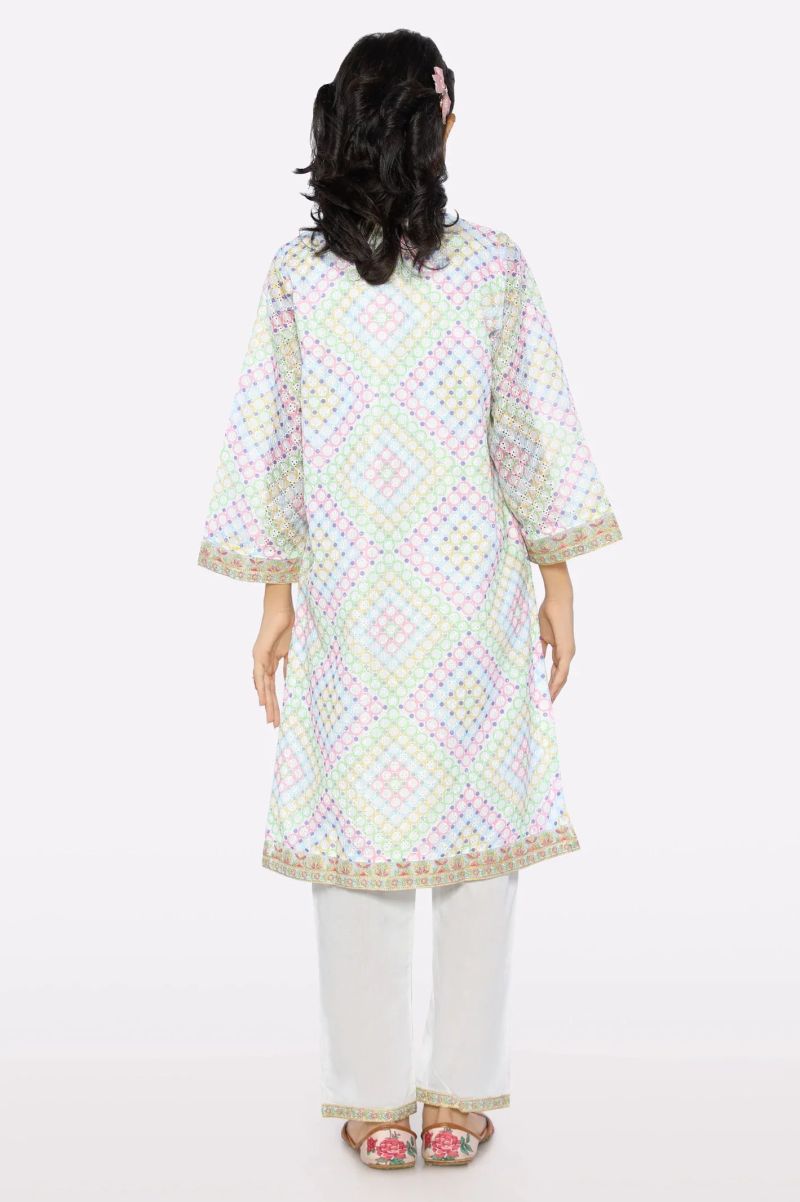 Plum 100% Cotton Lawn Green Colour Printed Yellow Green Flowers Embroidered Green threads On Stitched 2 pc suit for Girls.