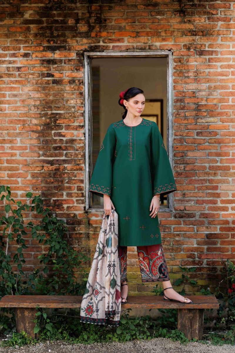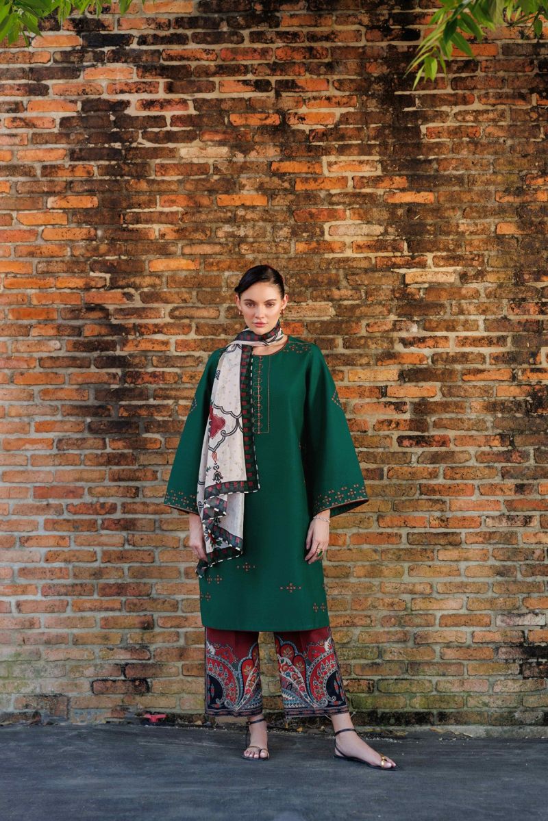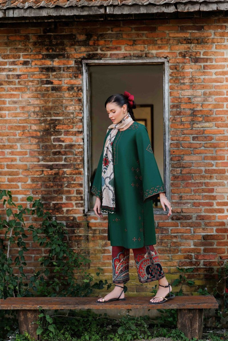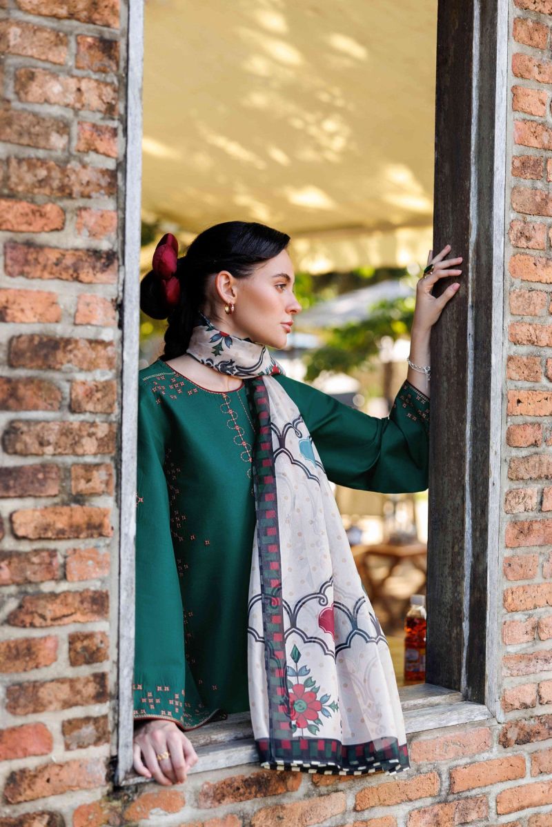Plum 100% Cotton Lawn Black Colour Printed Sea Green Flowers Embroidered Sea Green threads On Stitched 2 pc suit for Girls.